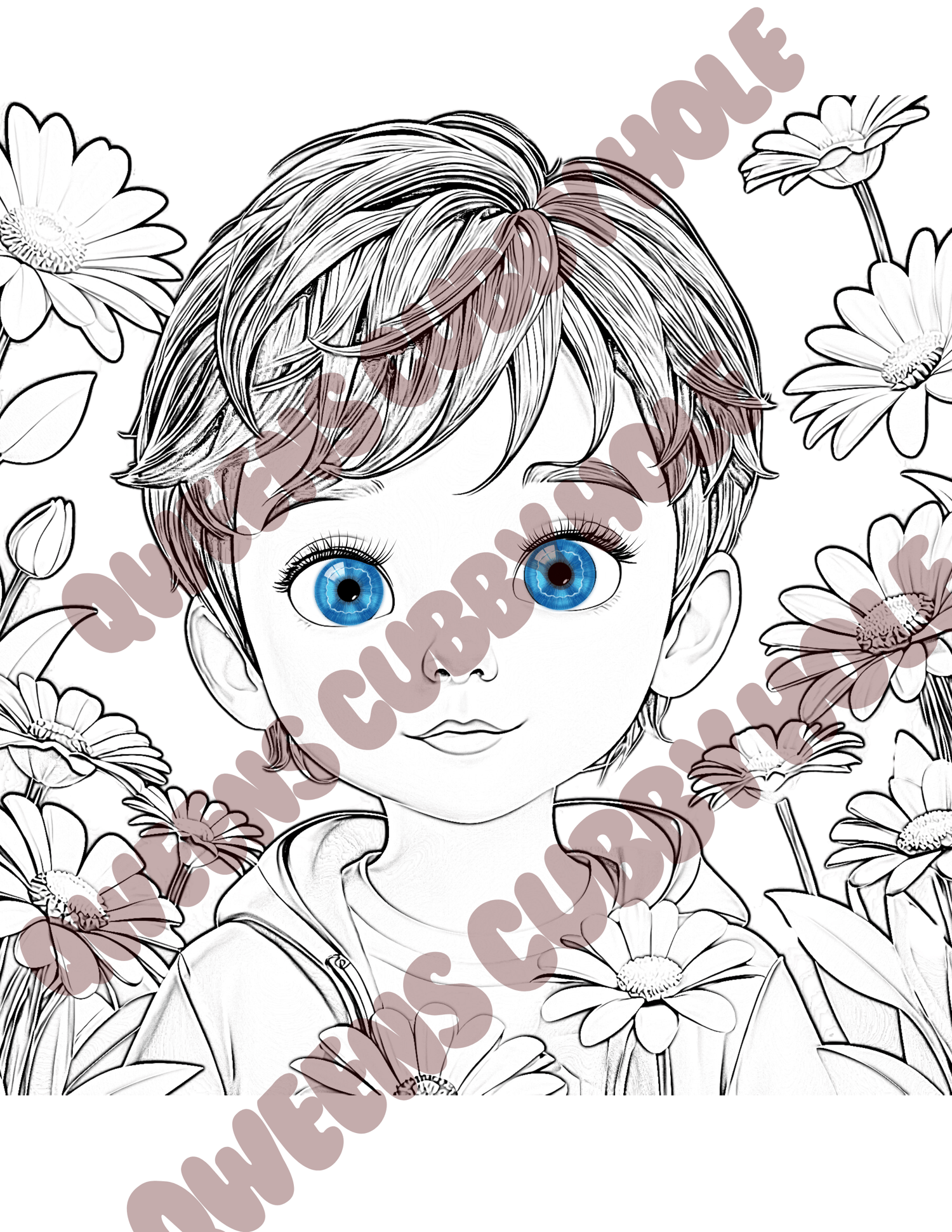 4pc LITTLE BOY BLUE EYES COLORING PAGE BUNDLE