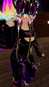 Clothing Toggles: Baggy shirt, open sweater, tiny tank top, baggy pants, shoes.
