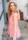Keyhole Button Down Flutter Sleeve Floral Top - Peach / $17.99