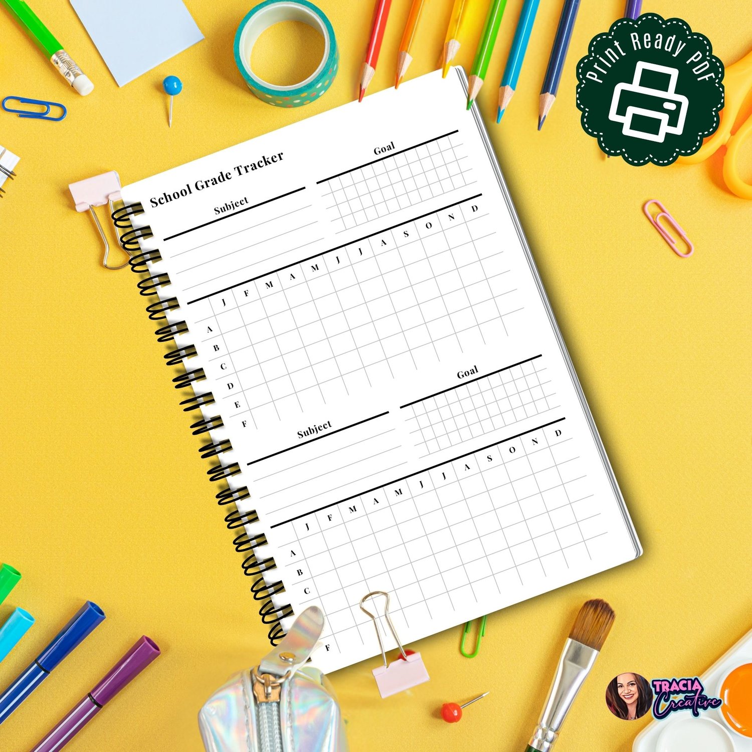 Elevate your academic game with the School Grade Tracker from Tracia Creative. Designed to empower students to take control of their academic destiny, this tracker is your first step towards a brighter educational future.