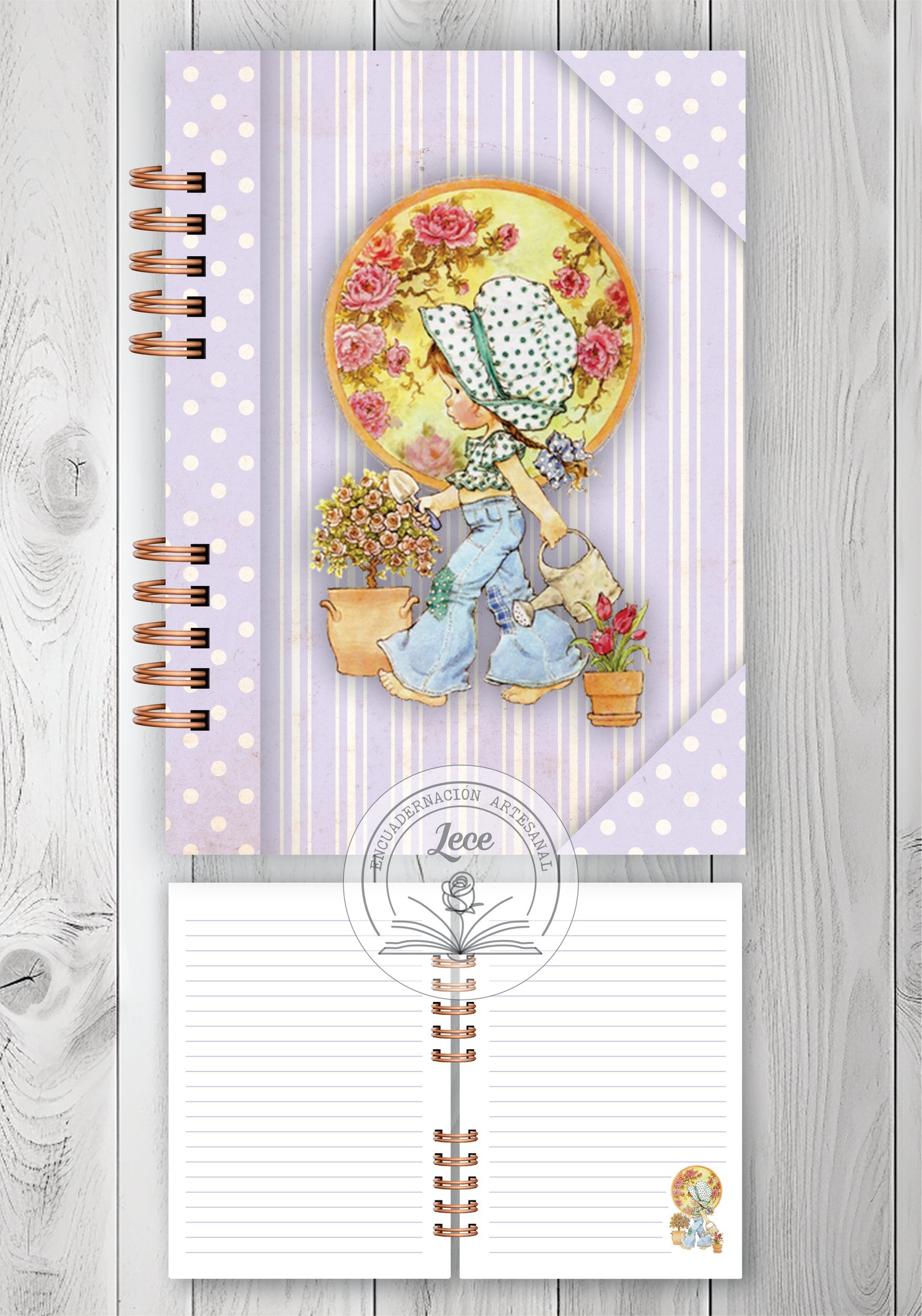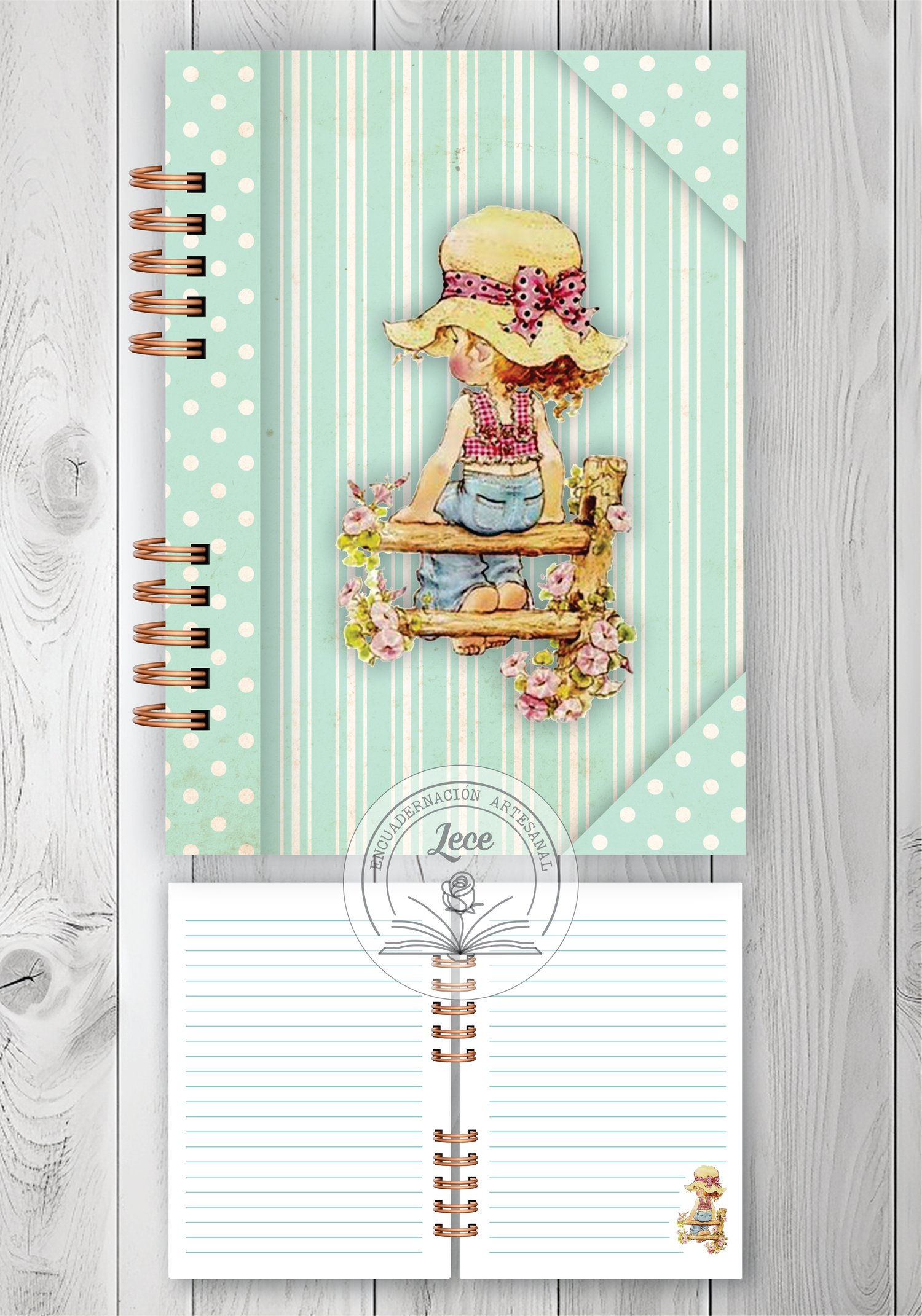 - 4 modelos de interiores de 100 hojas rayadas con diseño y colores a tono de las portadas con sus variantes para imprimir en tamaño A5 para anillado y costura