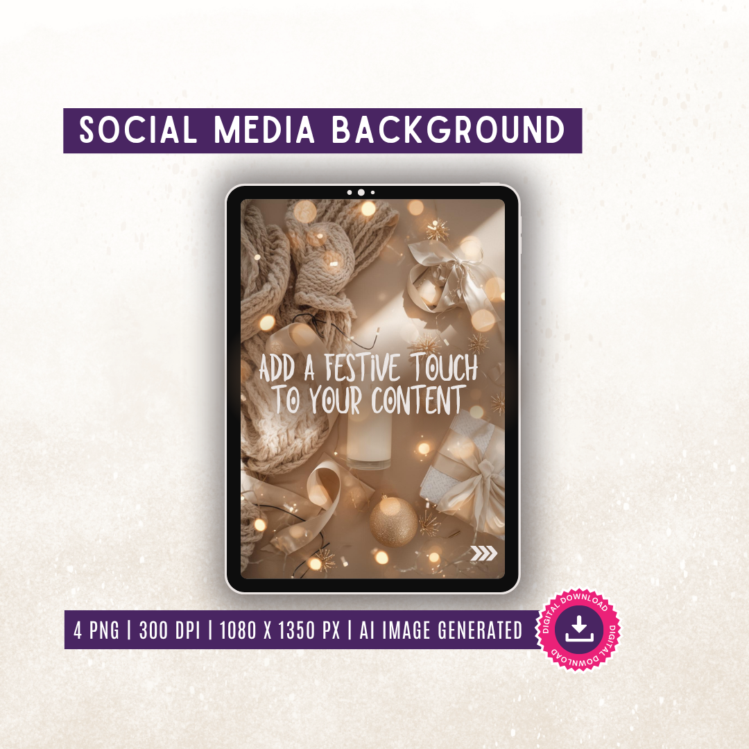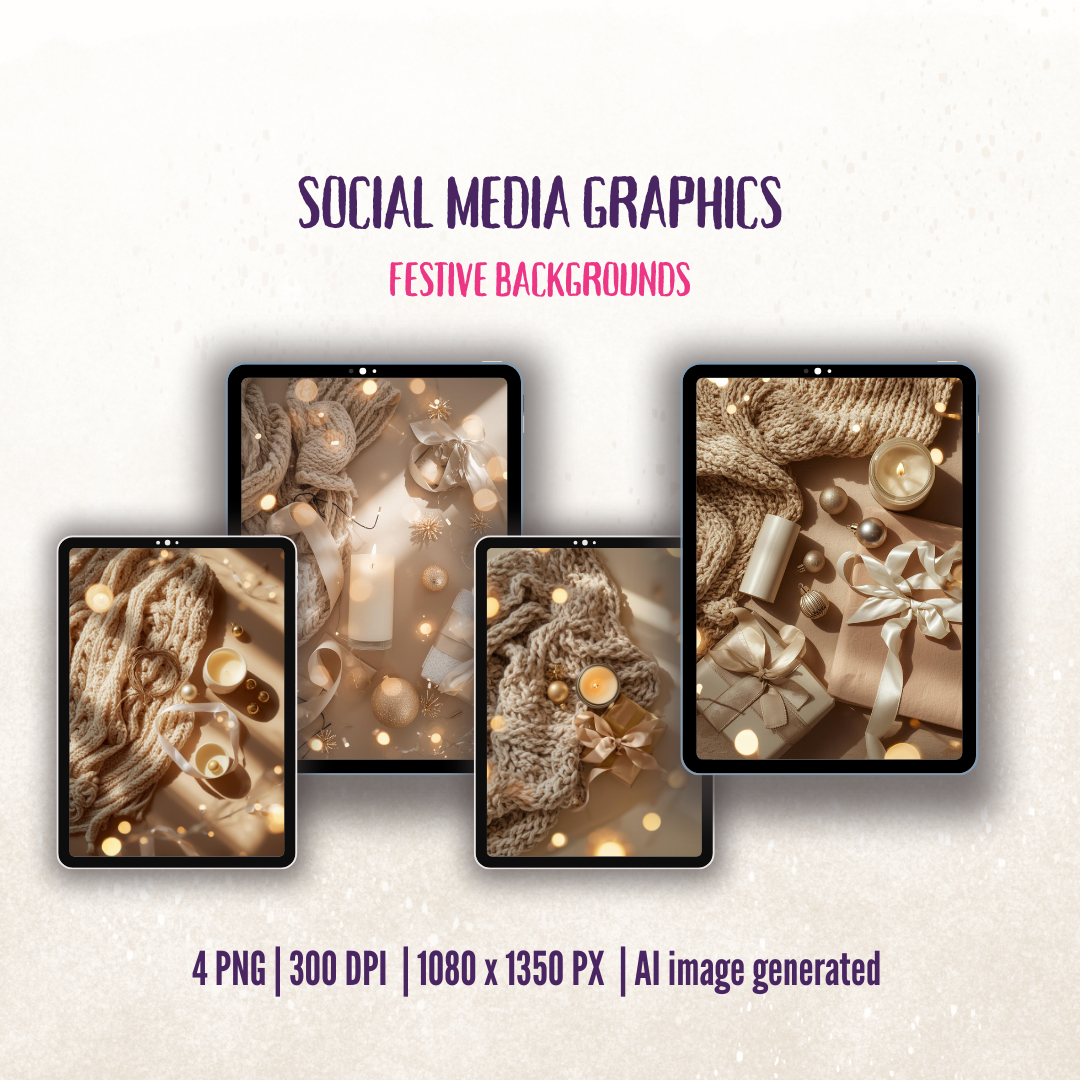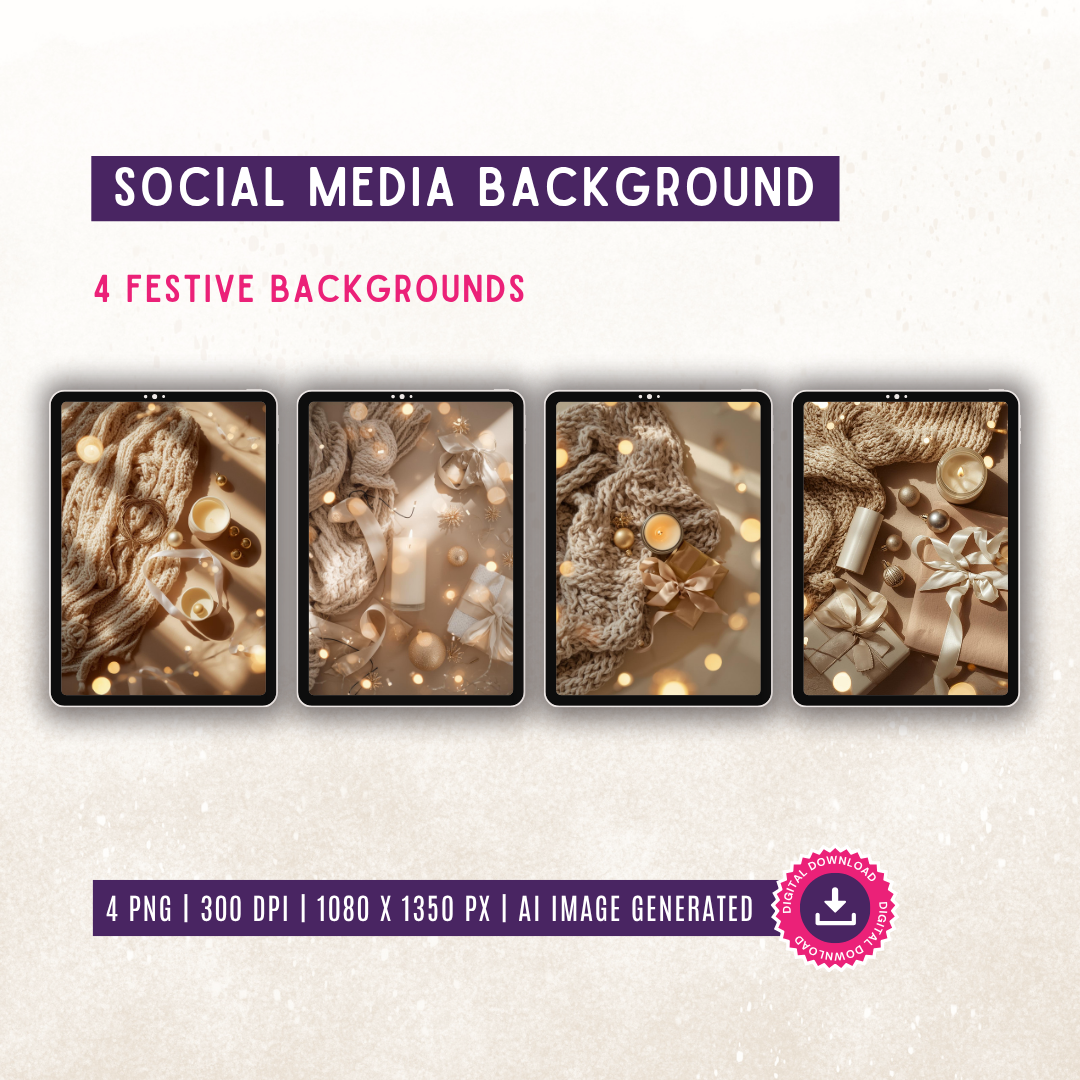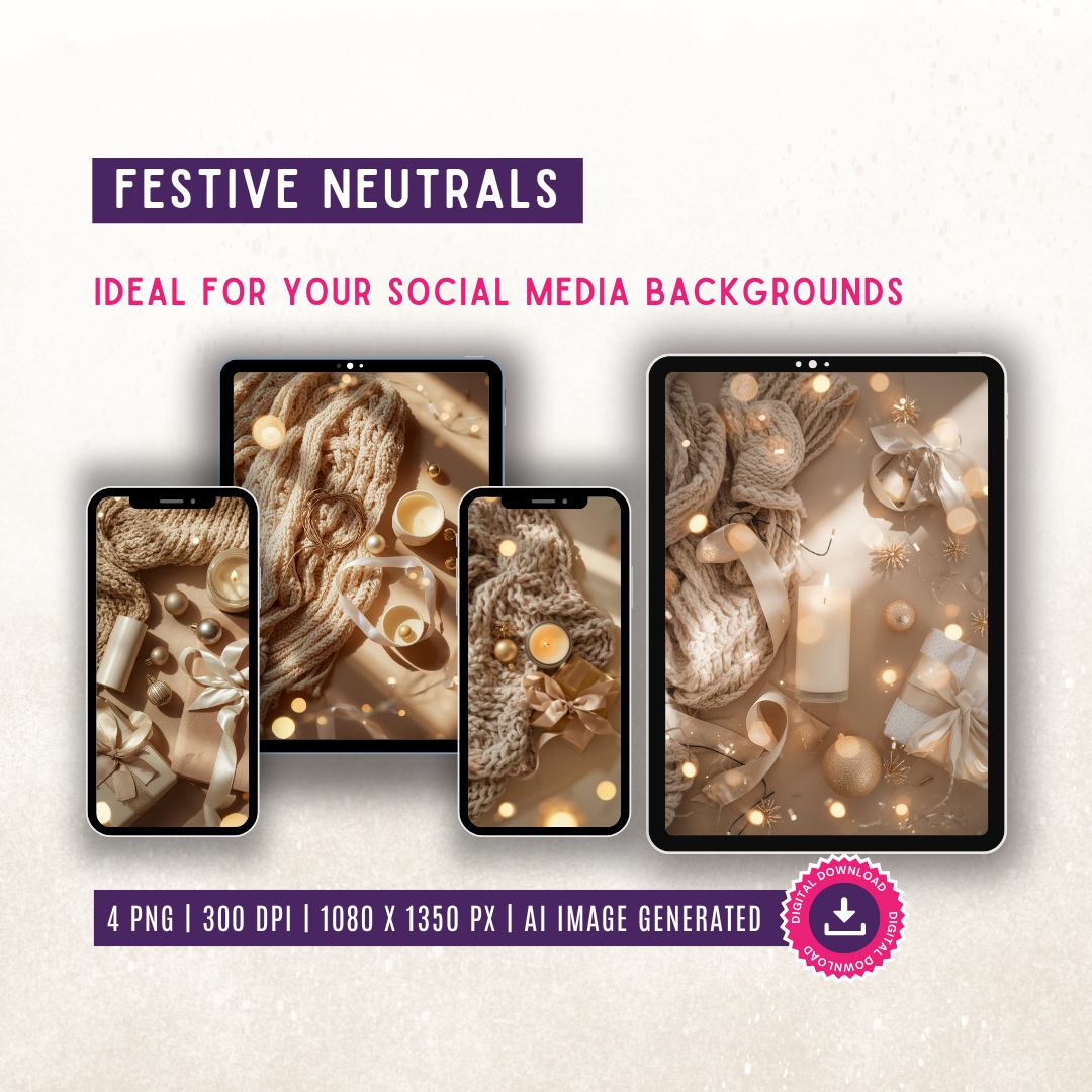 Festive Neutrals AI Image Pack – 4 Social Media Backgrounds