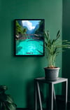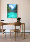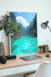 This beautiful printable wall art features the opening verse of the Quran, Al-Fatiha (1:2): "All praise is for Allah, Lord of all worlds." The powerful verse is set against a stunning image of a tranquil tropical landscape with turquoise waters and lush mountains, creating a serene and contemplative atmosphere. This printable art is perfect for adding a touch of Islamic inspiration and beauty to your home or office. Simply download, print, and frame. This image was created using AI as a visualization tool.