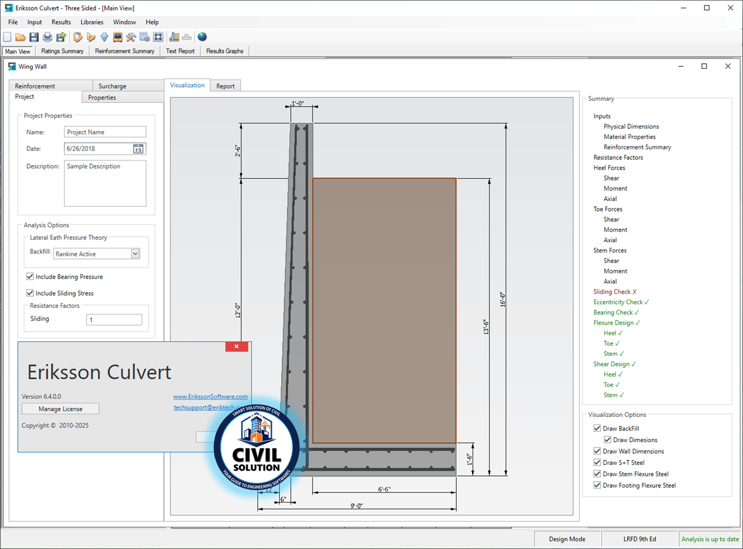 🧱 Eriksson Technologies Culvert v6.4.0.0 is a powerful engineering software for design, analysis, and detailing of precast and cast-in-place box culverts. The latest version delivers highly integrated automation tools and flexible modeling capabilities for both simple and complex culvert structures, drastically improving productivity and quality control for civil and structural engineers.