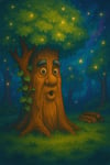 This whimsical digital art print is perfect for forest lovers, playful souls, and believers in the magic of trees with stories to tell.