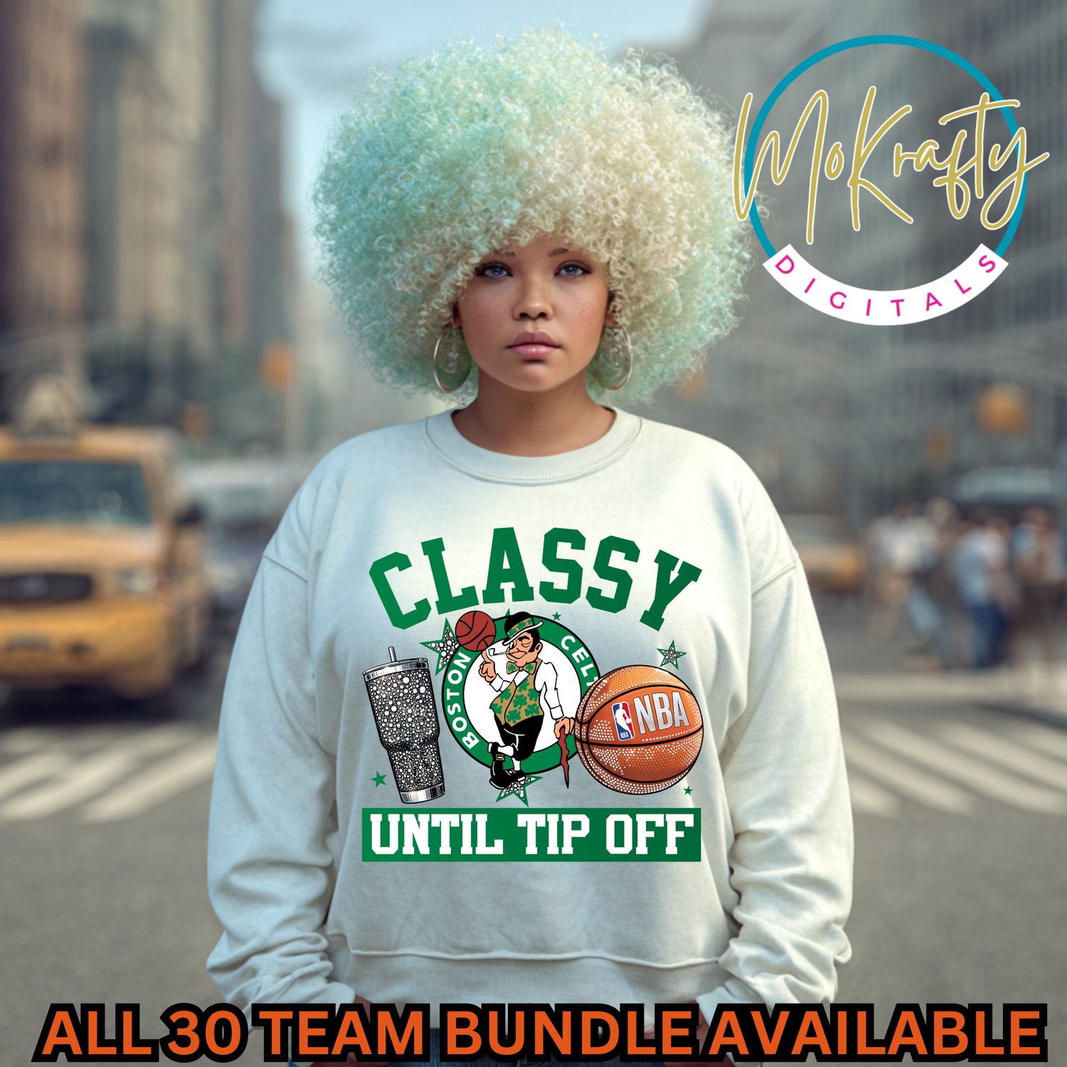 Bring some gameday glam to your shop or creations with this bold “Classy Until Tip Off” basketball fan design! Perfect for custom shirts, tumblers, hoodies, bags, and more — especially for basketball lovers who keep it cute until the whistle blows.