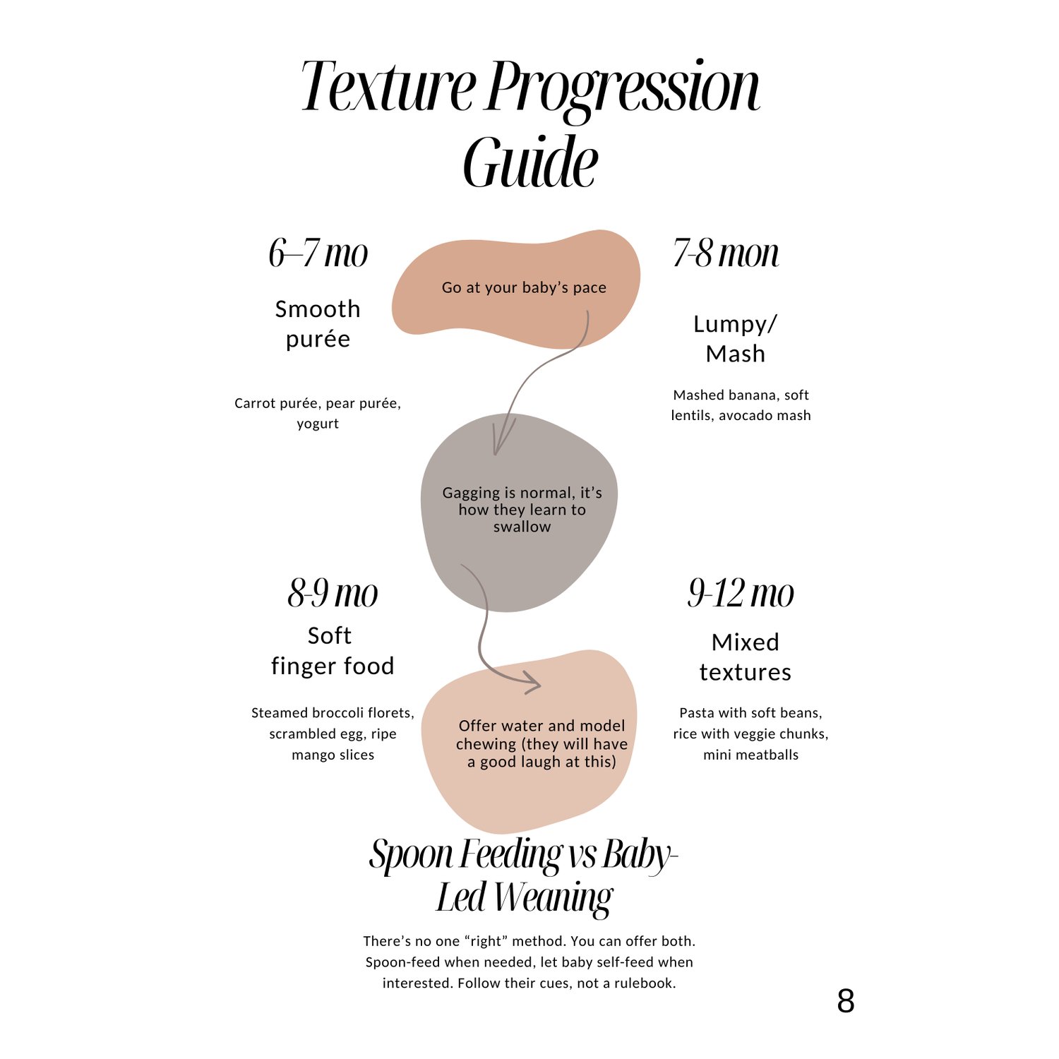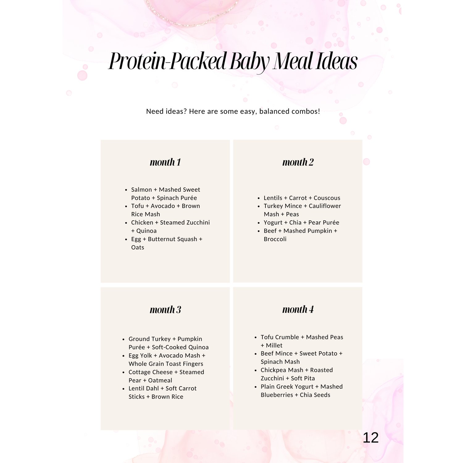 - 🍗 Baby-friendly protein sources + texture progression chart
