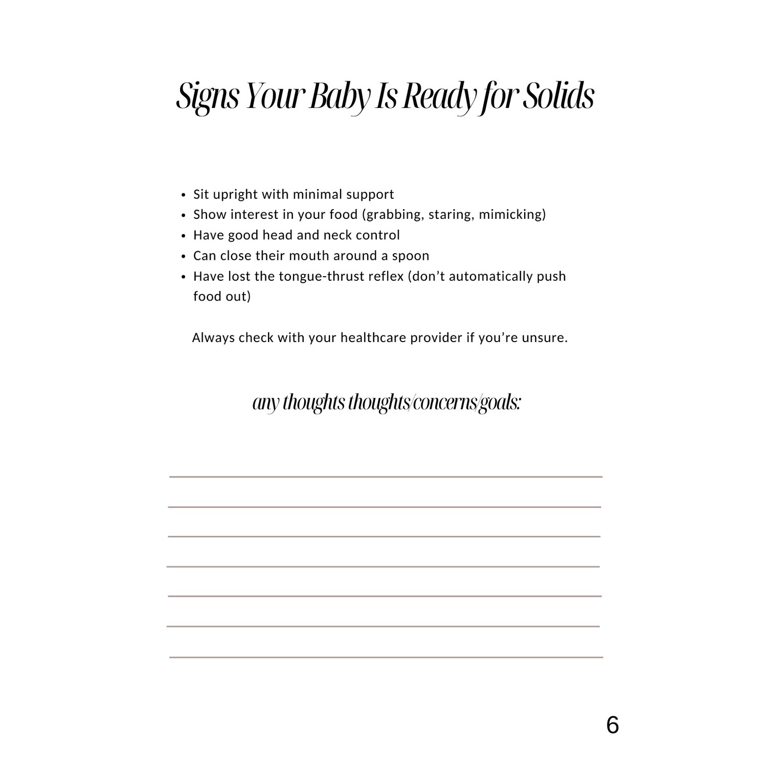 • Includes printable allergy tracker, solids starter schedule, and notes pages