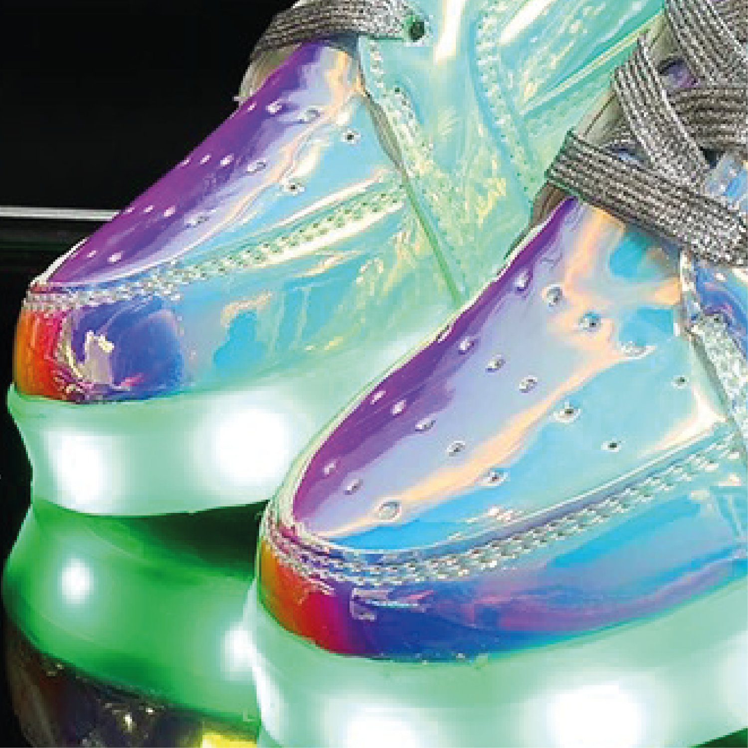 - Lumières LED Scintillantes : Équipez-vous d'une semelle LED puissante offrant plusieurs couleurs et modes dynamiques (fixe, clignotant, etc.). Changez la couleur de votre lumière pour qu'elle s'accorde parfaitement à votre tenue Multi Silver !