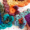 For these samples, it is best to use multi-colored yarn or several solid threads. Various types of wool, acrylic are suitable. DK size or thicker should be used for good texture. The gauge doesn’t matter! It is important to choose a yarn that has volume.