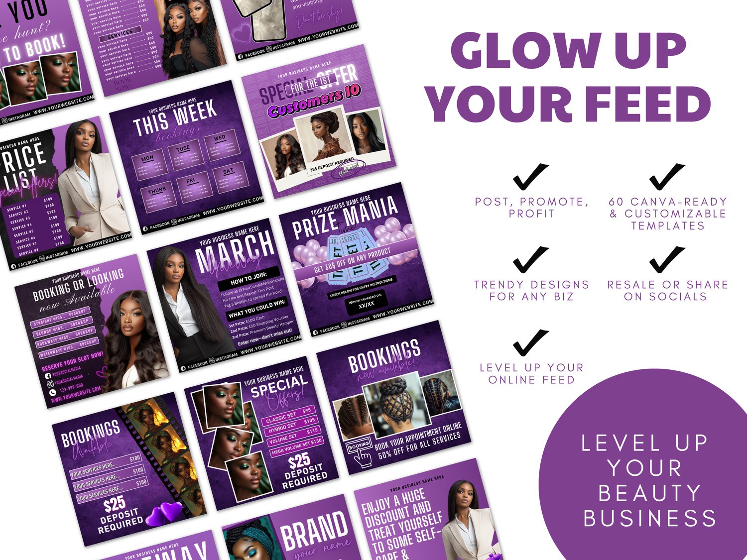 With 60 templates in one bundle, you’ll have endless content ideas, saving time while keeping your feed trendy, professional, and fully customizable. Perfect for beauty entrepreneurs ready to shine online!