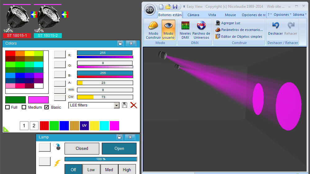 Esta Librería SSL2 está optimizada para trabajar con Magic 3d Easy View. Es decir para ver una representación 3D de las secuencias que estemos realizando con Freestyler, QLC+ o cualquier otro soft que se conecte con Magic 3d.
