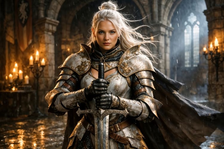 Rendered in ultra-crisp 10K resolution, this artwork is built to dominate: every ember spark, soot smear, dented plate, and weathered heraldic detail reads with cinematic clarity—perfect for collectors who want a bold medieval centerpiece that feels alive.