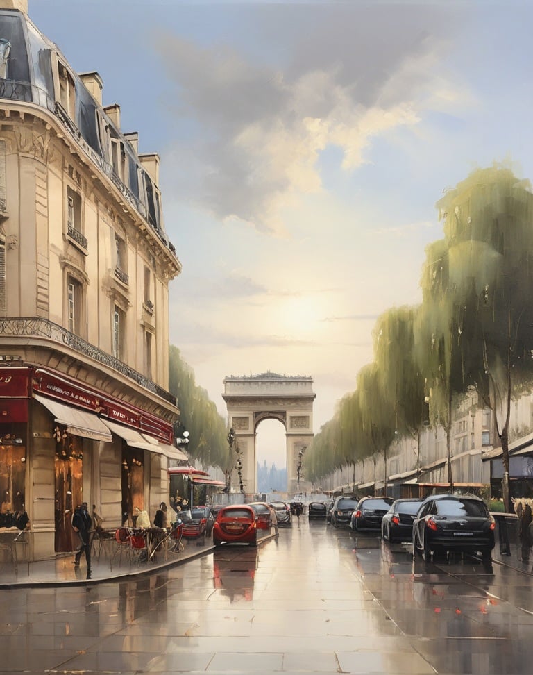 The city of Paris, France, an artistic, distinctive and beautiful work of art describing the beauty of Paris, the city’s cafes.