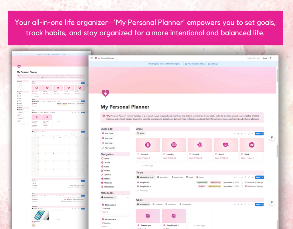 Stop juggling multiple apps. My Personal Planner is your all-in-one life organizer, designed to streamline your routine and help you live with intention.