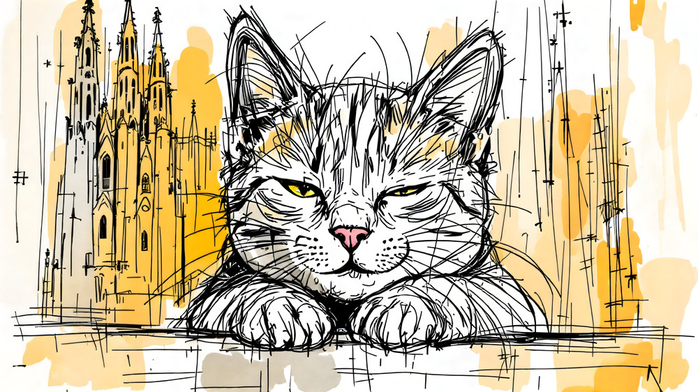 This unique sketch design features a cat playfully winking, embodying the iconic spirit of Barcelona. A minimalist yet expressive tribute to the city's artistic charm. Perfect for cat lovers and Barcelona enthusiasts alike!
