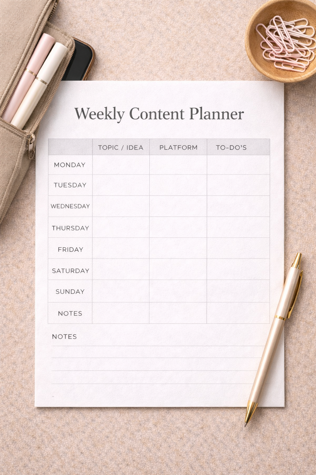 Weekly Content Planner Printable | Simple Content Planning Sheet | Creator Planner