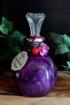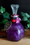 Pulloa ravistamalla neste liikkuu violeteilla pyörteillä, jossa violetti hohto.