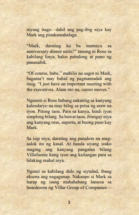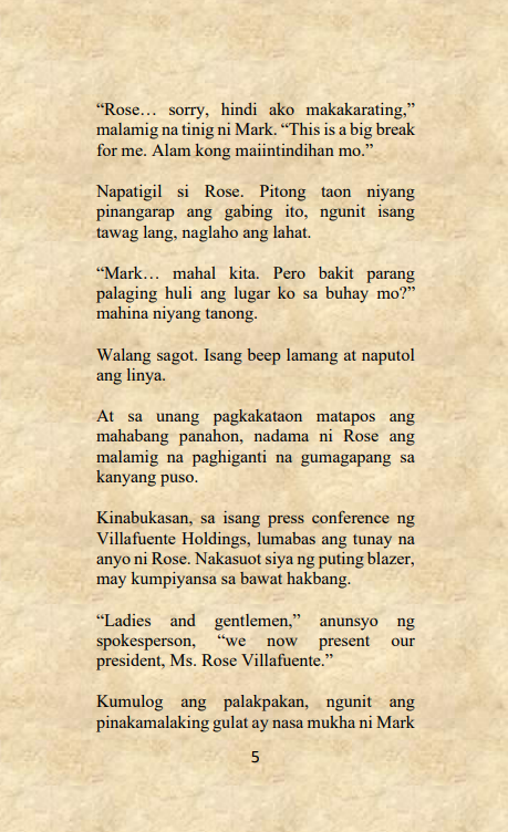 Ang Paghihiganti ni Rose Villafuente ay isang nobelang puno ng drama, pagtataksil, at katapangan—isang kuwento ng babaeng muling tumindig, nagbalik, at haharapin ang mundo nang walang takot.