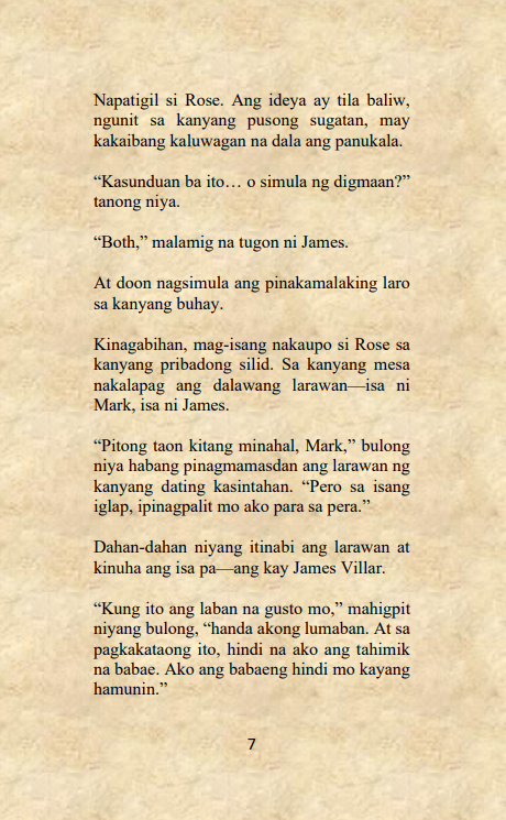 Sa mundong pinamumugaran ng pera, kapangyarihan, at kasinungalingan, iisa lamang ang matatag na reyna—si Rose Villafuente, ang tagapagmana at presidente ng pinakamalaking financial conglomerate sa bansa. Ngunit sa likod ng kaniyang marangyang anyo at matatag na pamumuno, nagtatago ang sugatang puso ng isang babaeng niloko at iniwan matapos ialay ang pitong taon ng kaniyang buhay at pagmamahal.