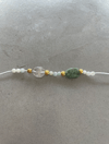 Zur Reinigung gehst du mit dem Armband oder Fußkettchen duschen oder hältst es unter fließendes Wasser. Alternativ kannst du es auch über Nacht auf eine Selenitplatte legen.