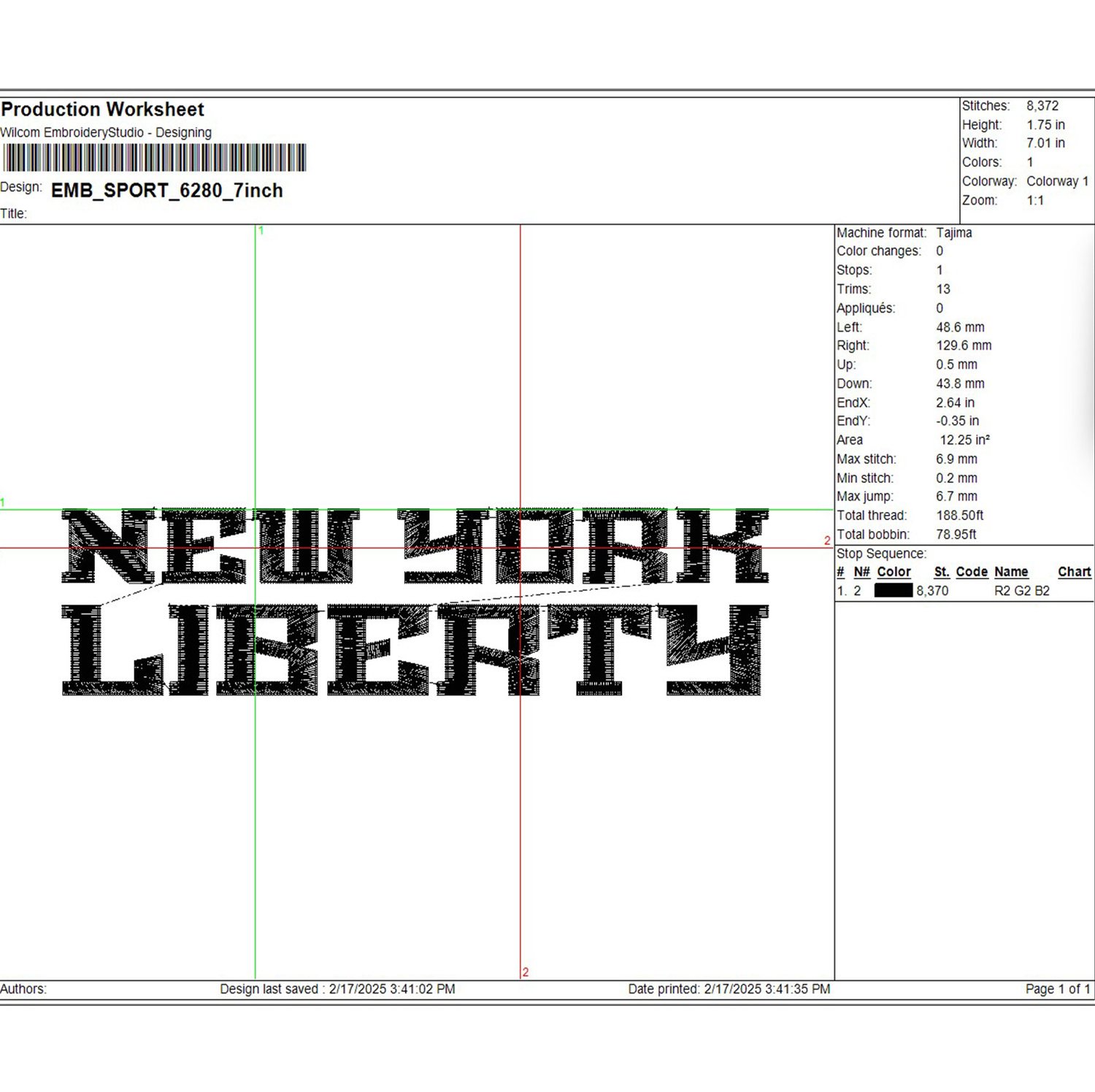 WNBA New York Liberty Writing Logo Embroidery Files, WNBA New York Team Embroidery Designs, Basketball Teams, 3 sizes, Machine embroidery designs, Digital Download
