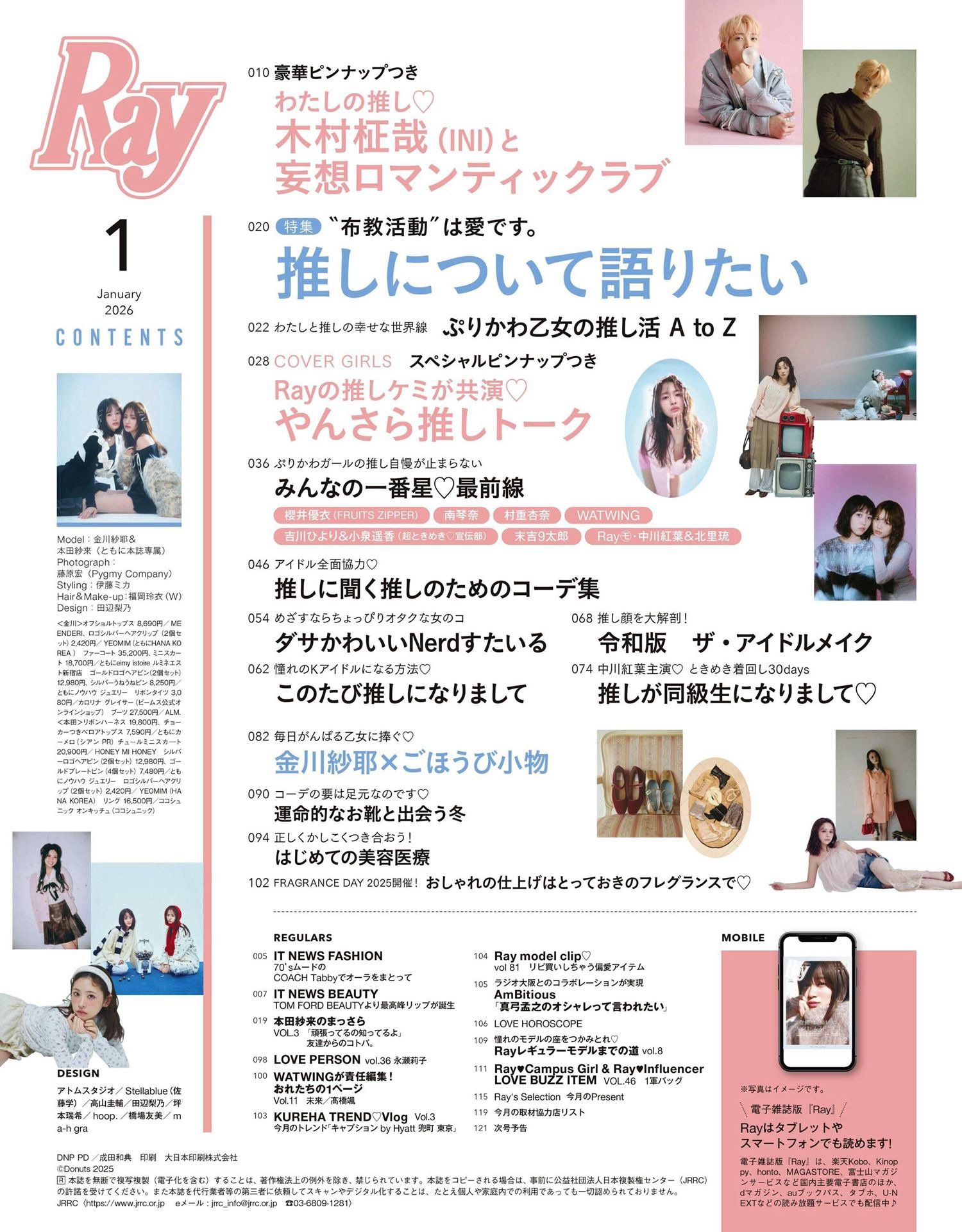 Ray is a popular Japanese women’s fashion and lifestyle magazine known for its cute, youthful, and trendy style. It focuses on everyday fashion, beauty tips, and lifestyle content that appeals especially to young women and teens who want stylish yet easy‑to‑wear outfits and fun beauty ideas.