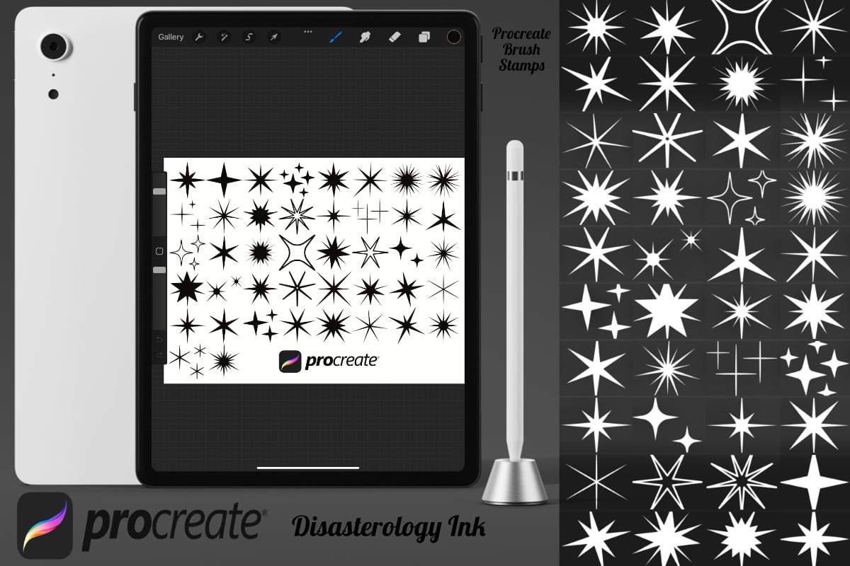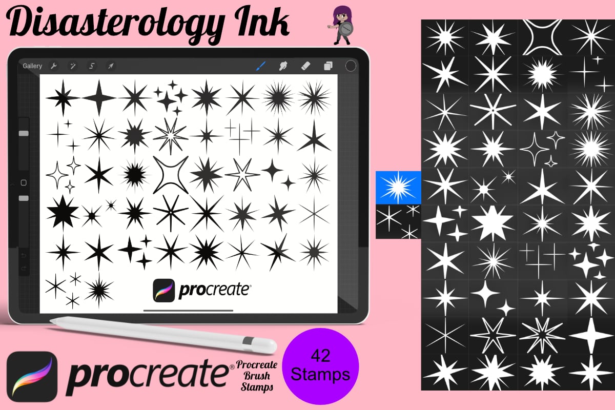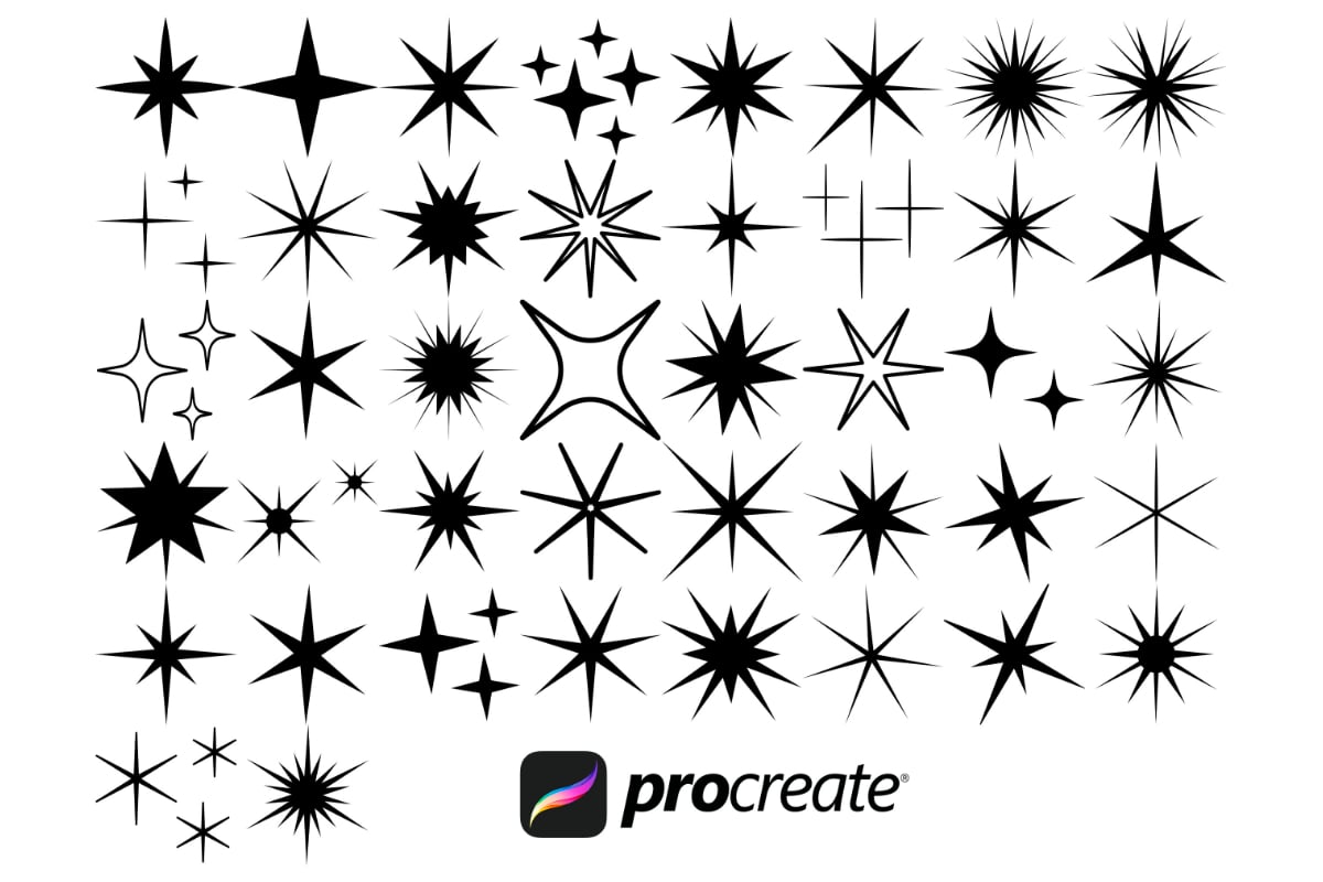 Sparkling Stars Set 3 Procreate Brush Stamps, 42 Star Stamps