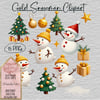 Festive Snowman Christmas clipart. White and gold, 15 PNGs