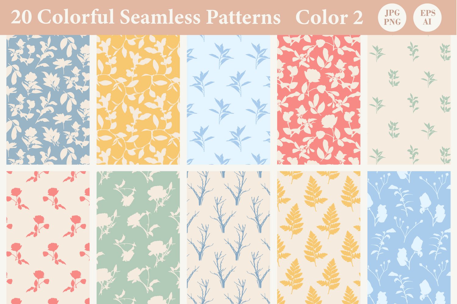 - Set of 20 Seamless Patterns in 2 color options (40 seamless patterns)