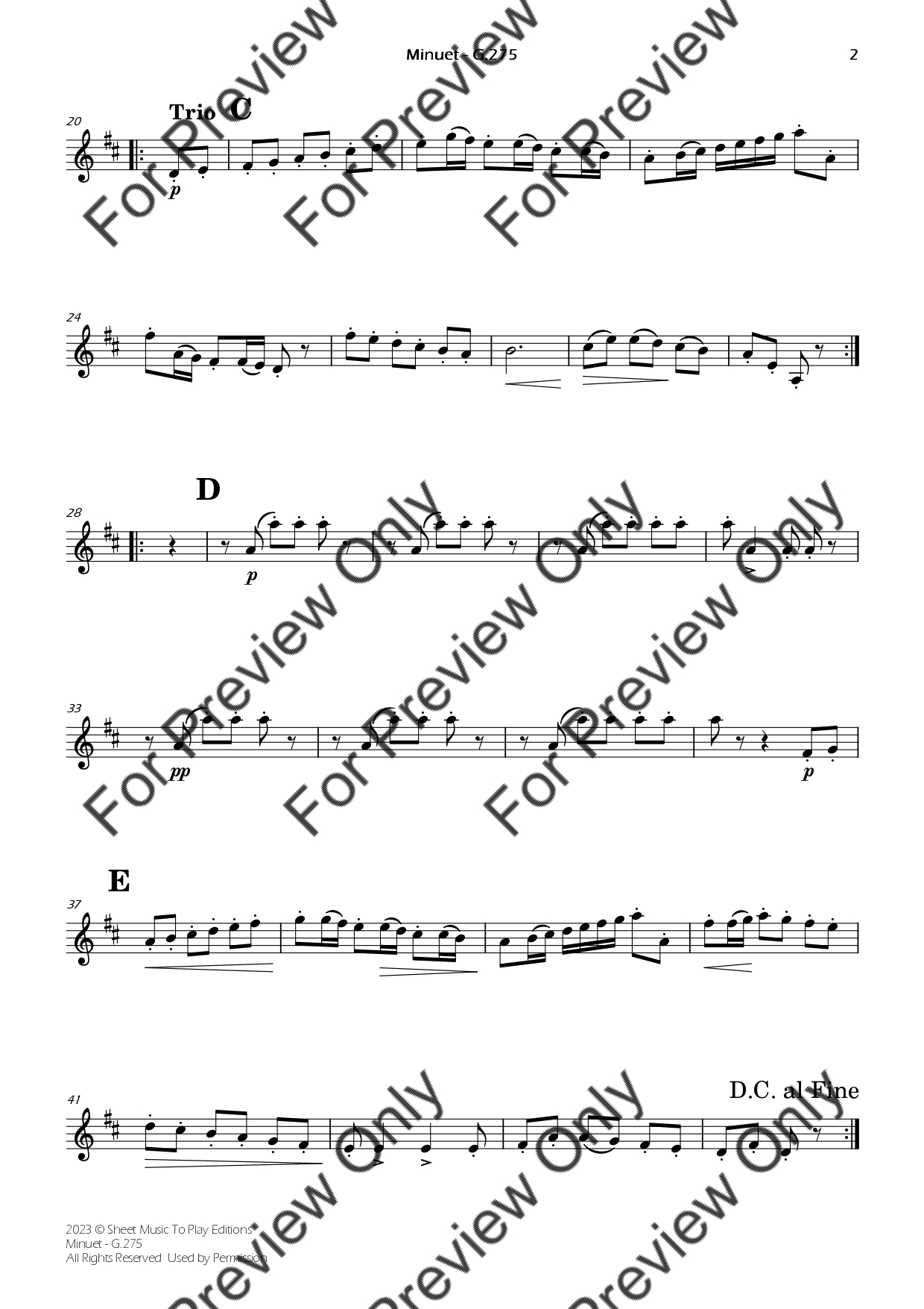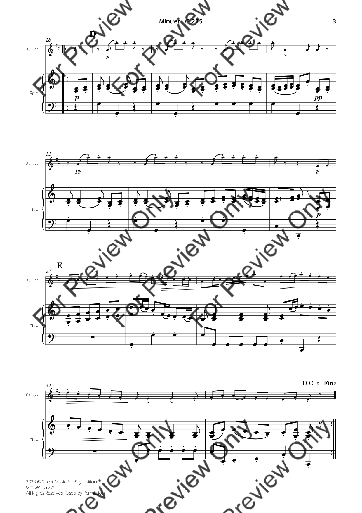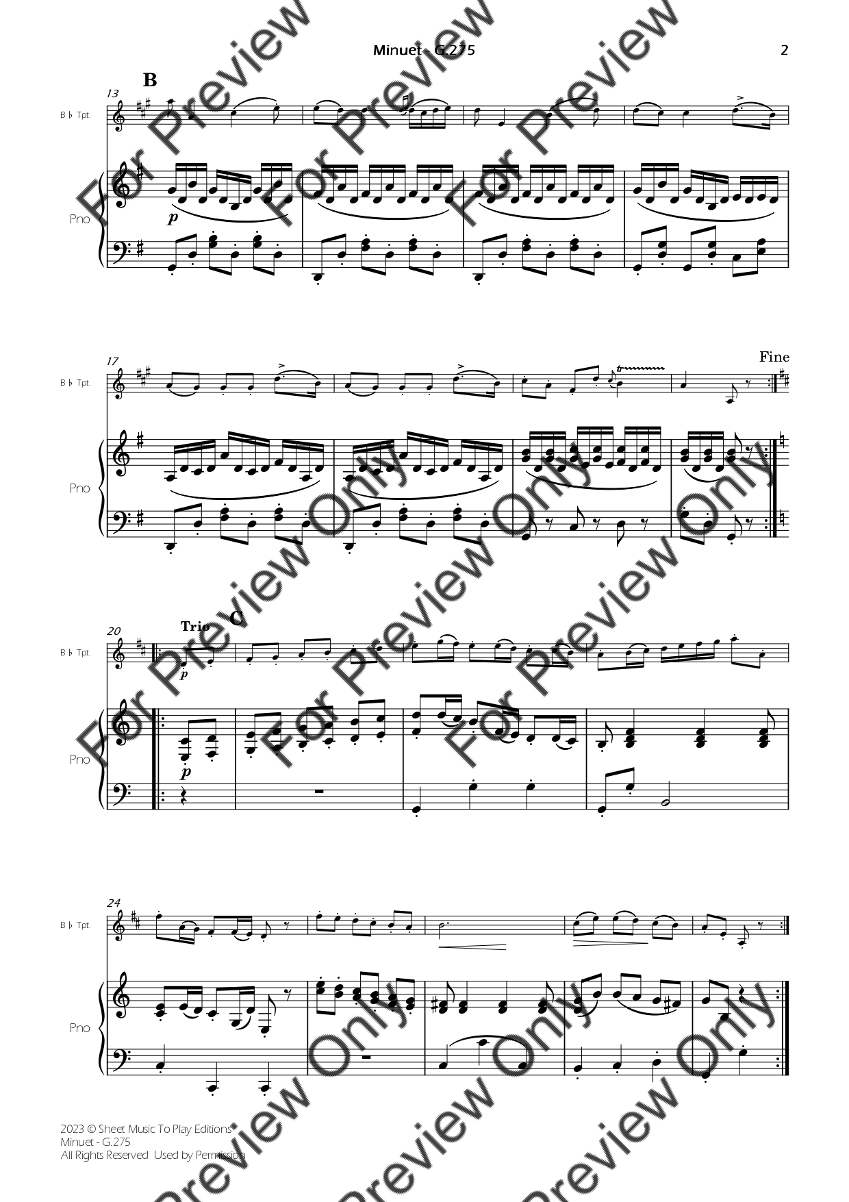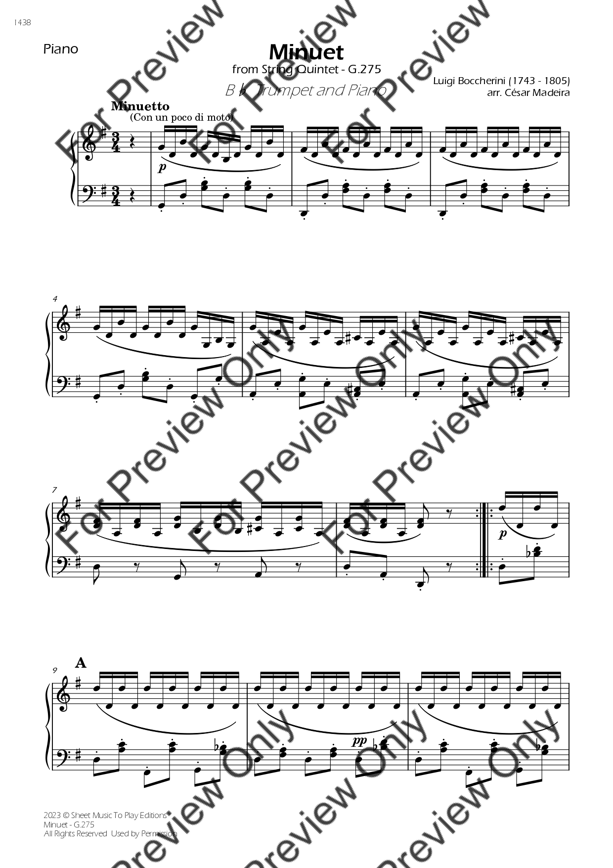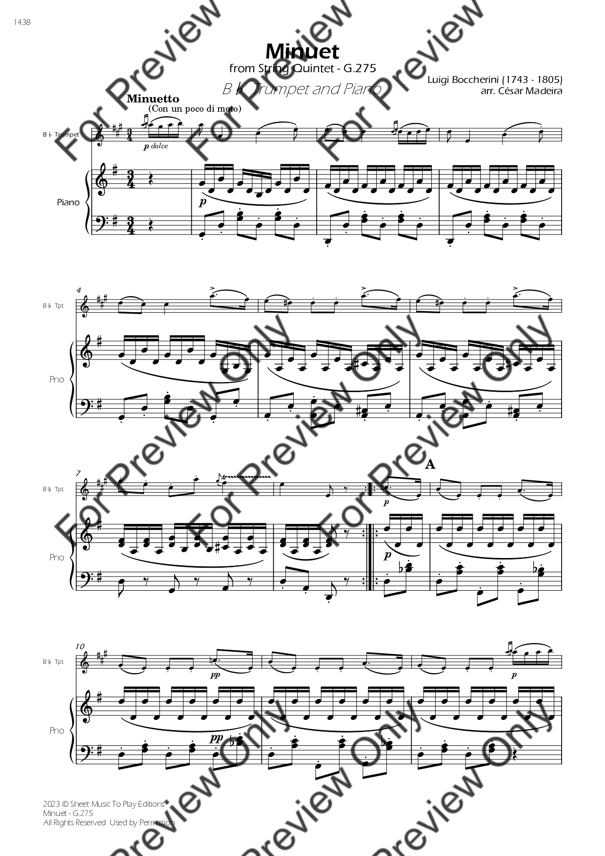Minuet from String Quartet - G.275 by Luigi Boccherini. Arrangement for Bb Trumpet and Piano. With Full Score and Individual Parts. Have fun!