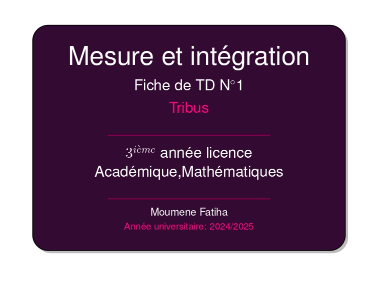 đ Mesure et IntĂ©gration Fiche TD1 : Tribus