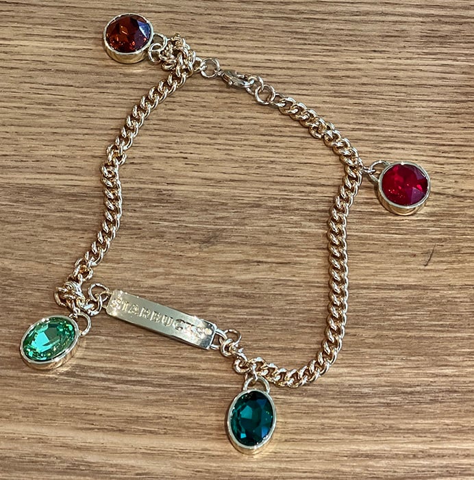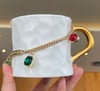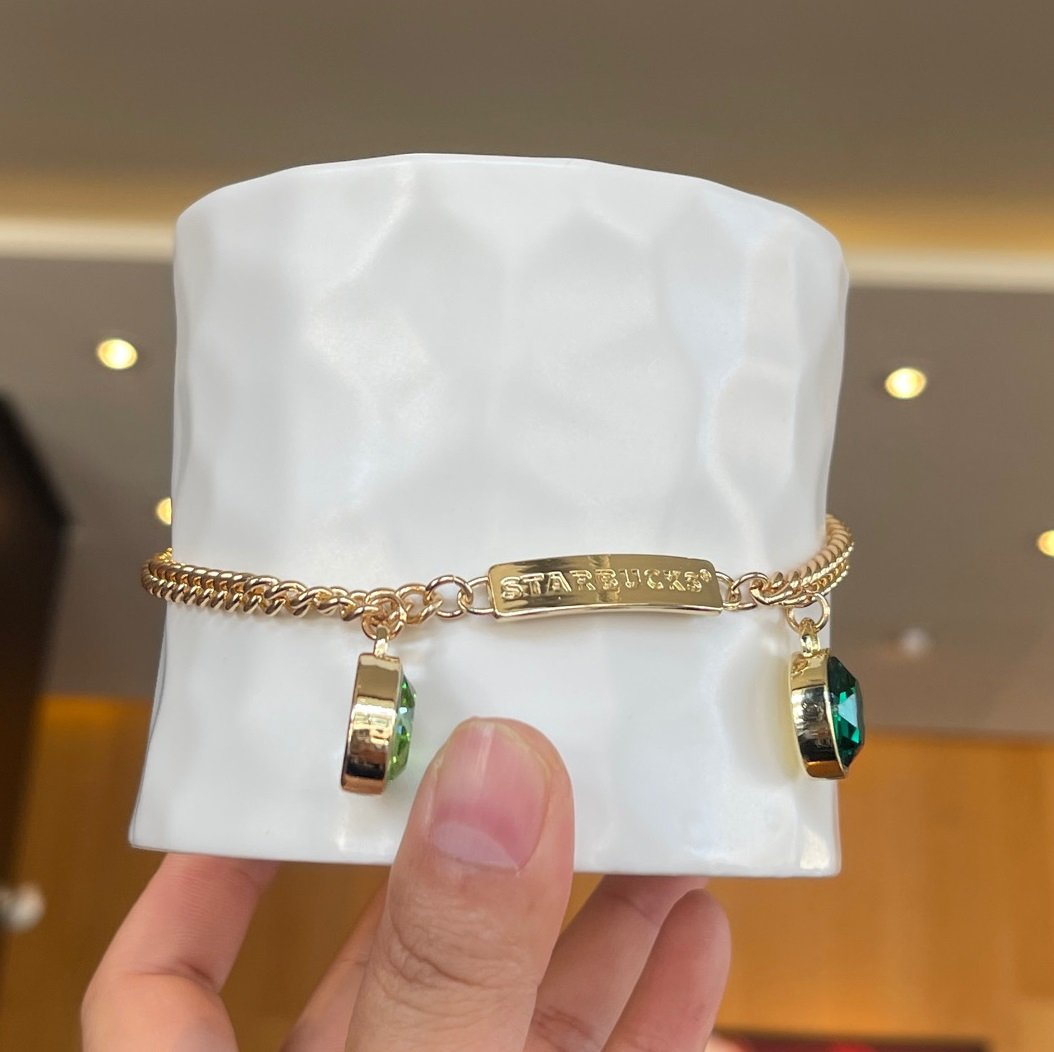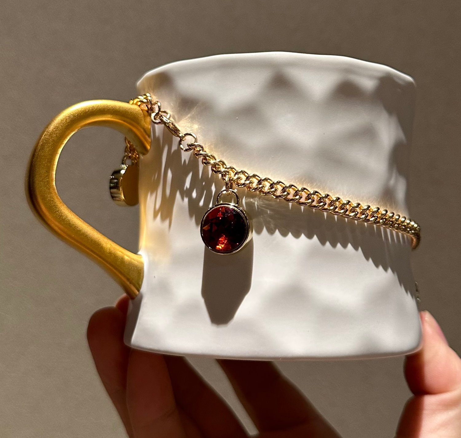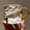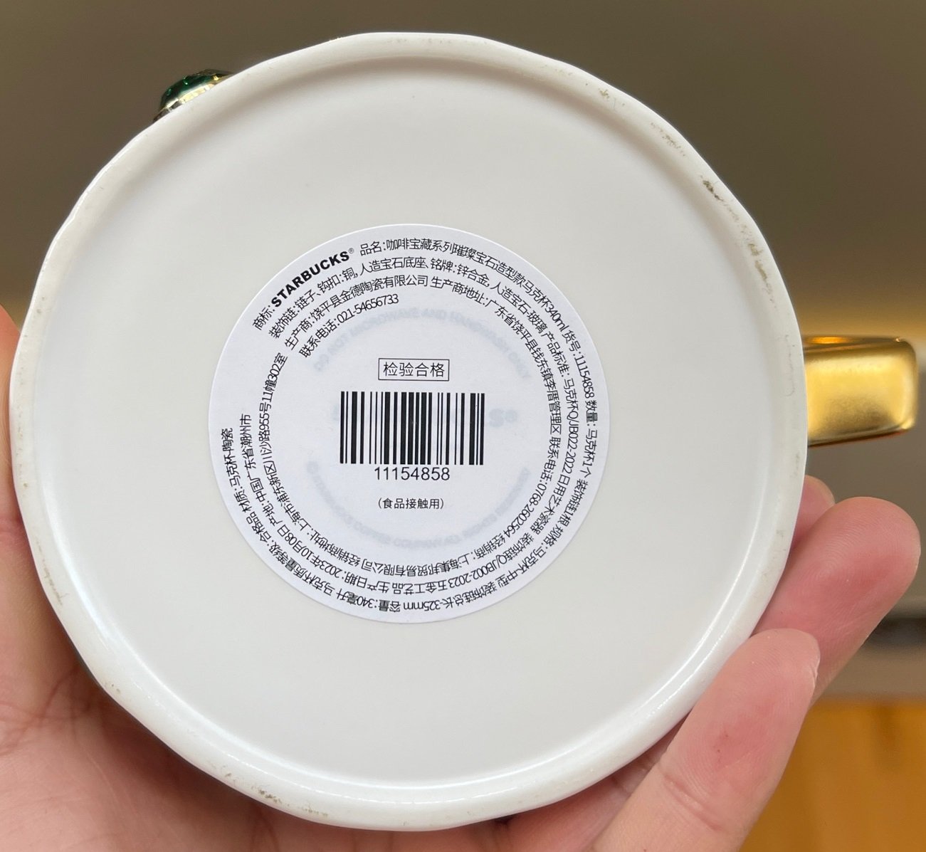 2023 Starbucks China Classic Coffee Series White/Gold Dimpled Porcelain Mug with Golden Chain beset with Red & Green Gemstones