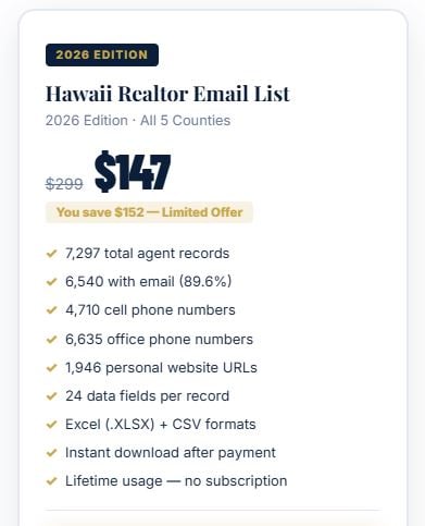 Hawaii Real Estate Agent Email List — 2026 Edition