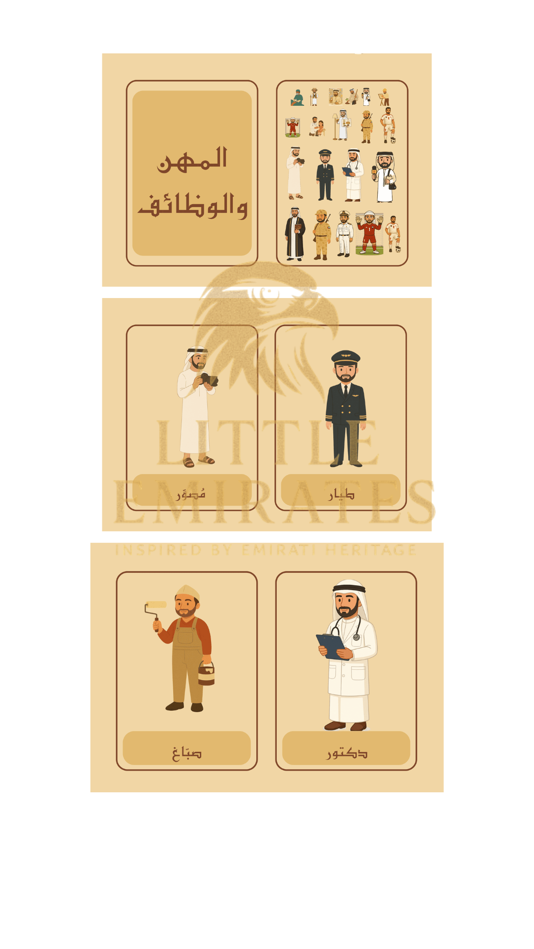 مع بطاقات تعليميه للمهن والمشاعرالسلسلة التعليمية الإماراتية للأطفال – بوسترات وأنشطة جاهزة للطباعة