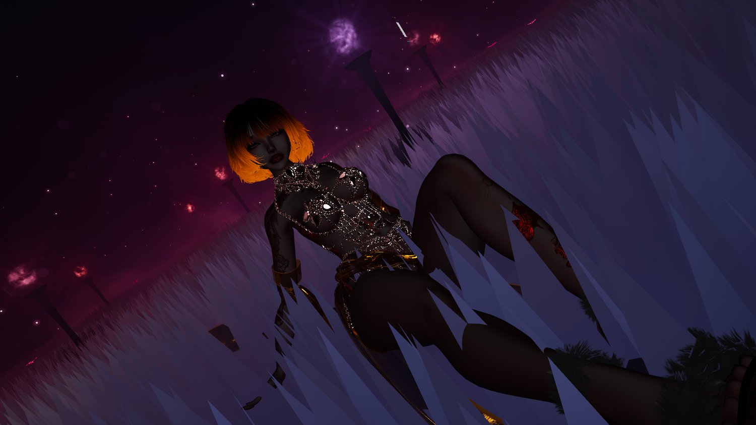 - Gemstones, Skirt, Sleeves, Arm ribbons, Thigh Highs