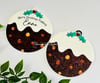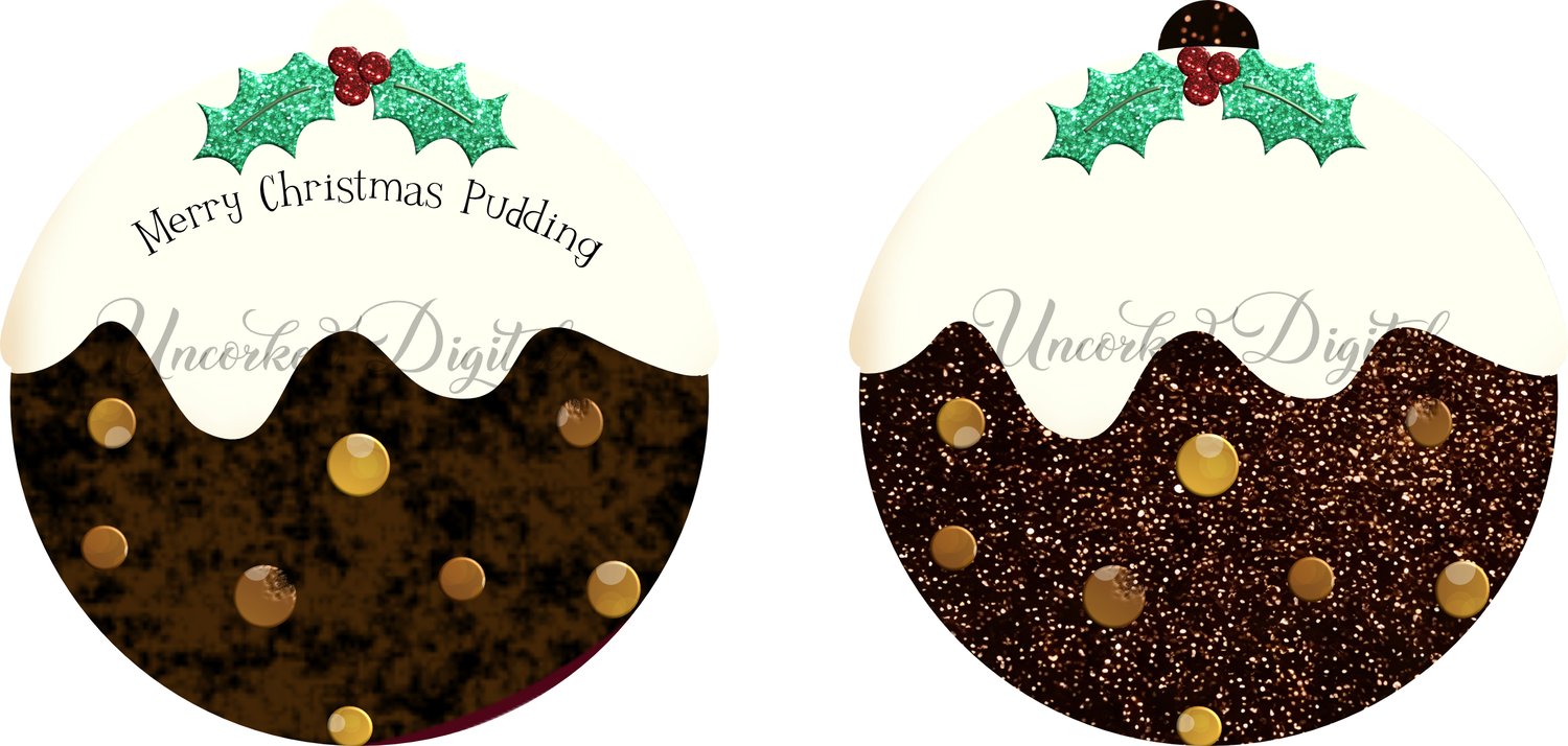 Christmas pudding, glitter and plain, with and without text (woodform)