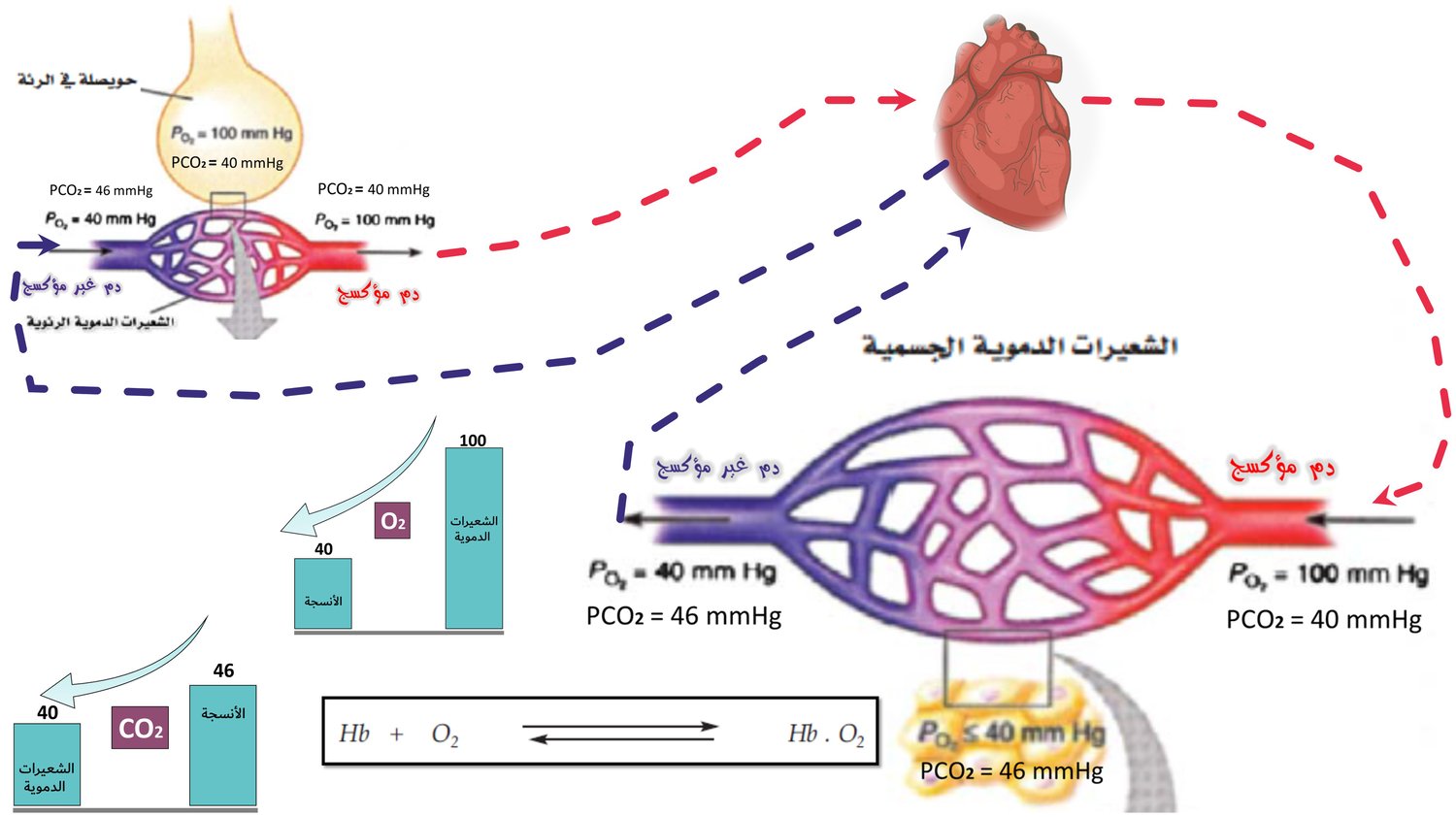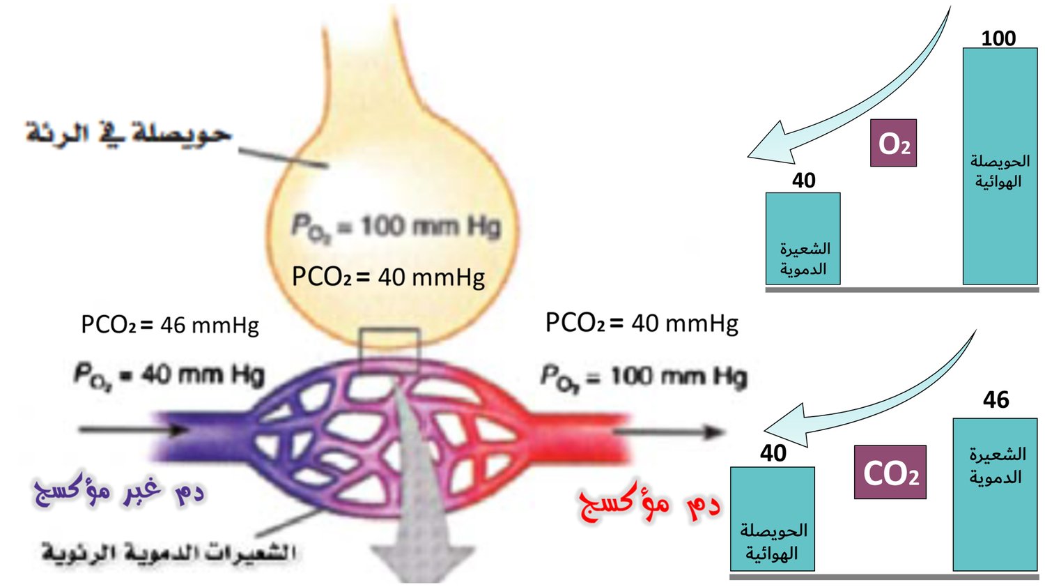 آلية انتشار غازات التنفس في جسم الأنسان