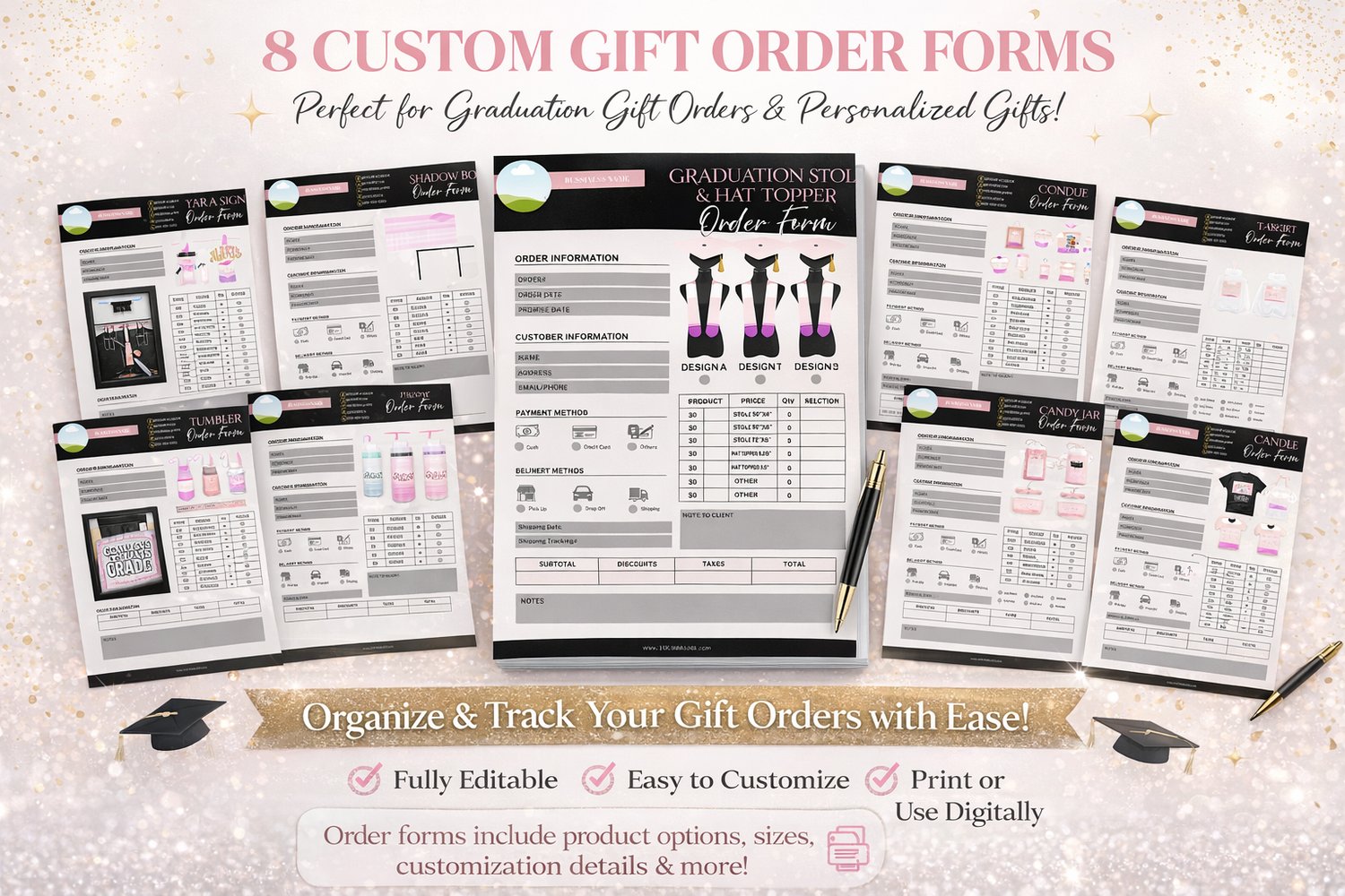 Graduation Gift Order Form Bundle | 8 Editable Canva Business Templates