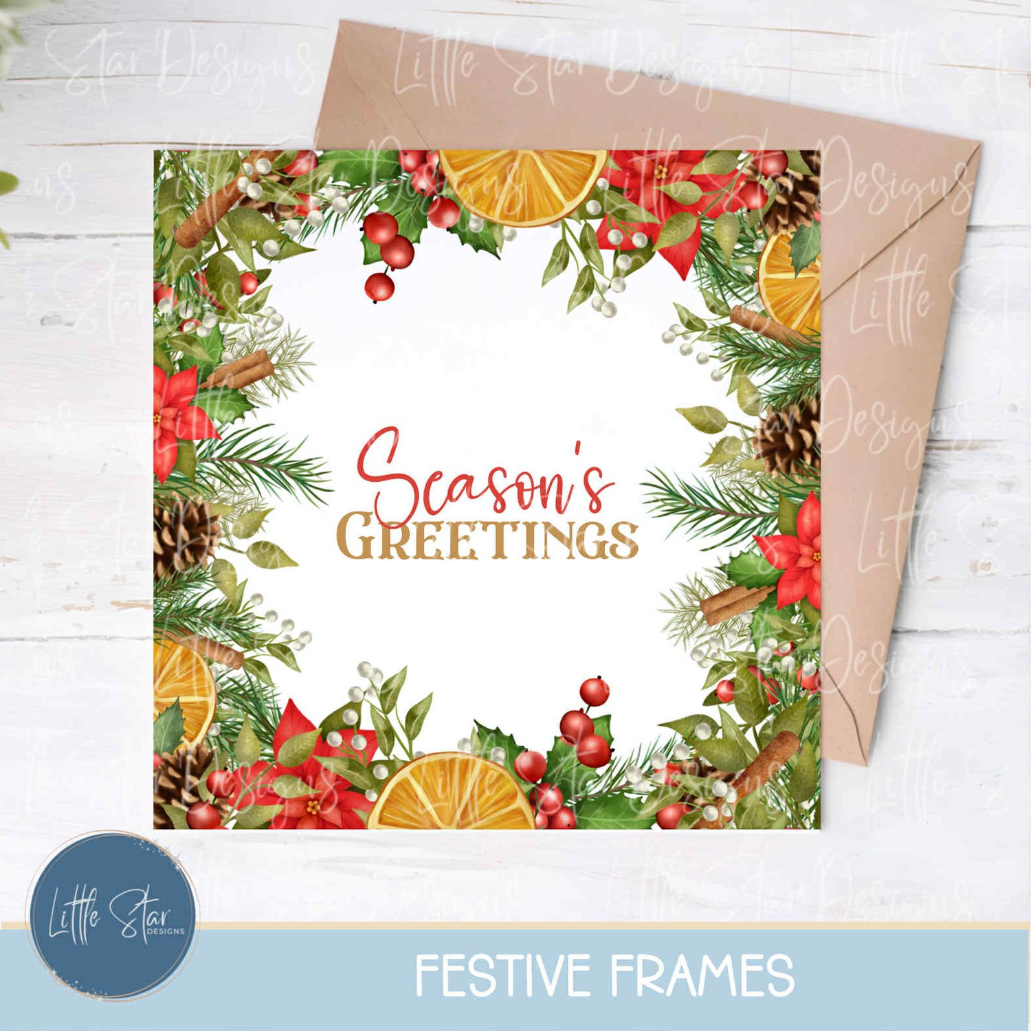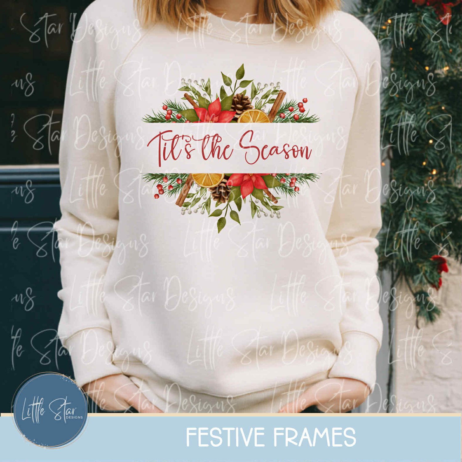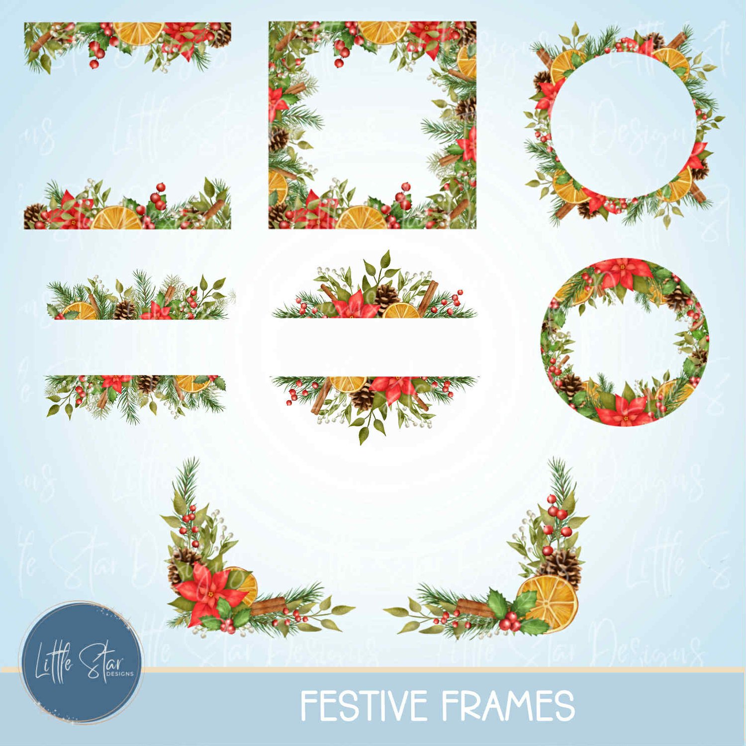 This is a high-quality hand drawn (300dpi PNG) clipart set digital download of my original artwork, titled “Festive Frames”, designed for sublimation and print.
