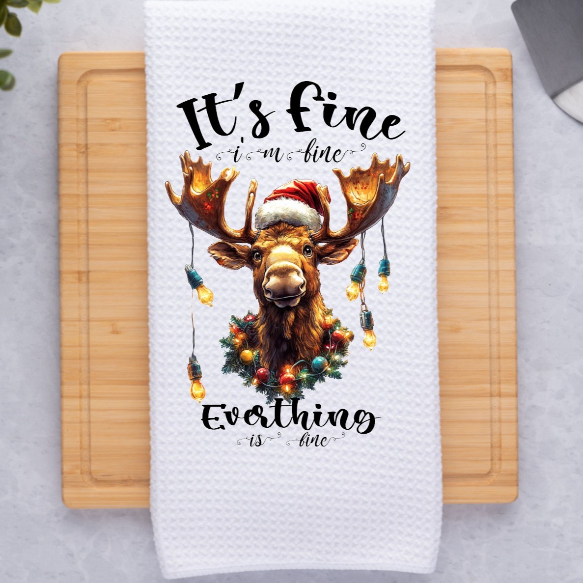 I'm Fine Everything's Fine Christmas Reindeer Funny Sarcastic Kitchen Dish Towel