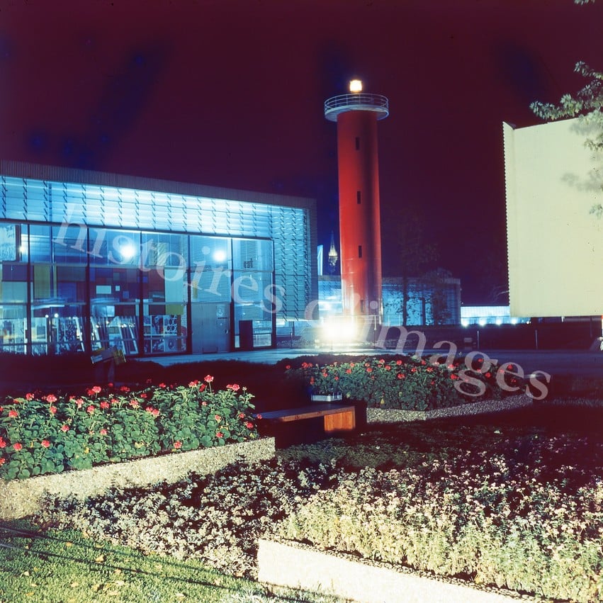Step into the glowing ambiance of the 1958 Brussels World’s Fair with this original color night photograph. Captured on analog film, the image reflects the magical atmosphere of Expo 58 after dark—where futuristic pavilions, architectural light displays, and international optimism came together in perfect harmony.