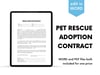 Simple, easy to understand pet adoption contract. This is a printable downloadable file in both Word and PDF formats. In the Word version, you can edit, add, or delete any information and insert your Rescue or Shelter's information, logo, etc. The pet adoption contract is customizable if you wish to change the language or you can use it as is and print your shelter's info on the contract as needed. This contract can be used for cats, dogs, or other animals such as rabbits, hamsters, and Guinea pigs.
