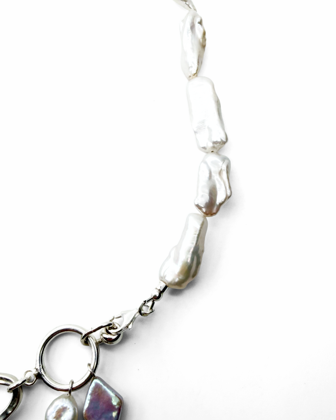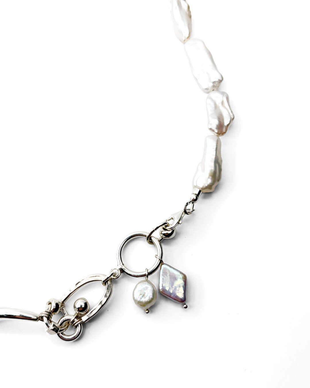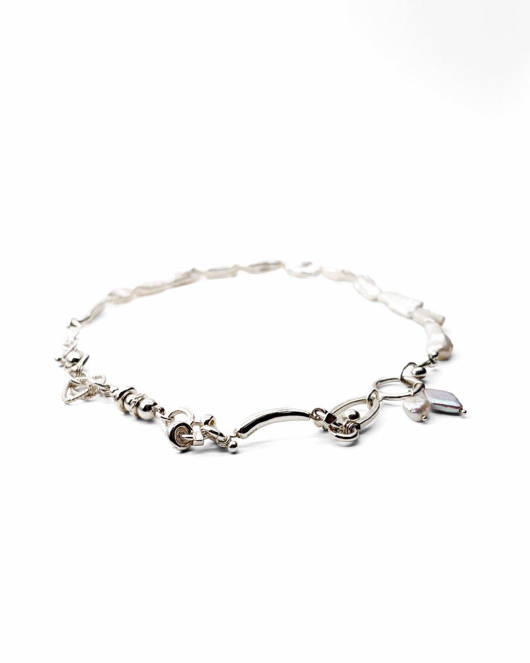The lower silver chain is detachable and can be worn separately as a bracelet.