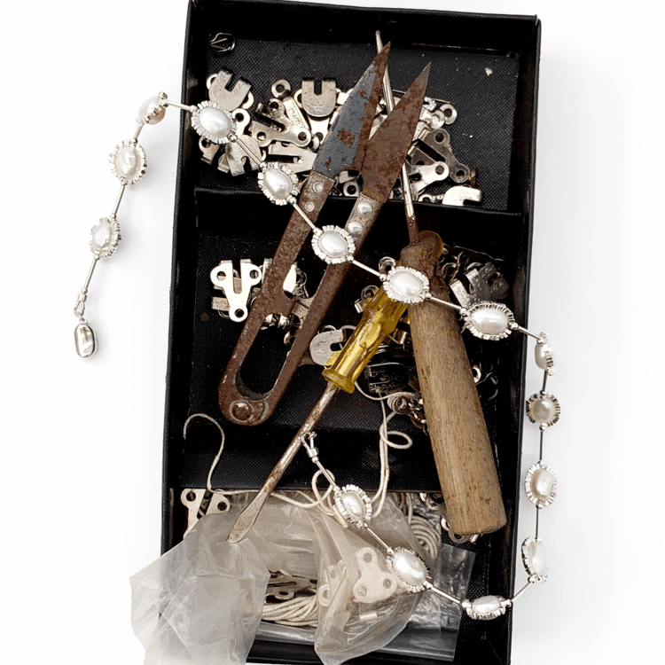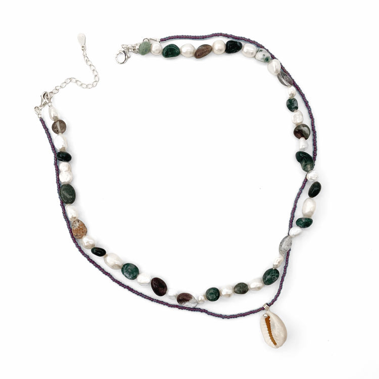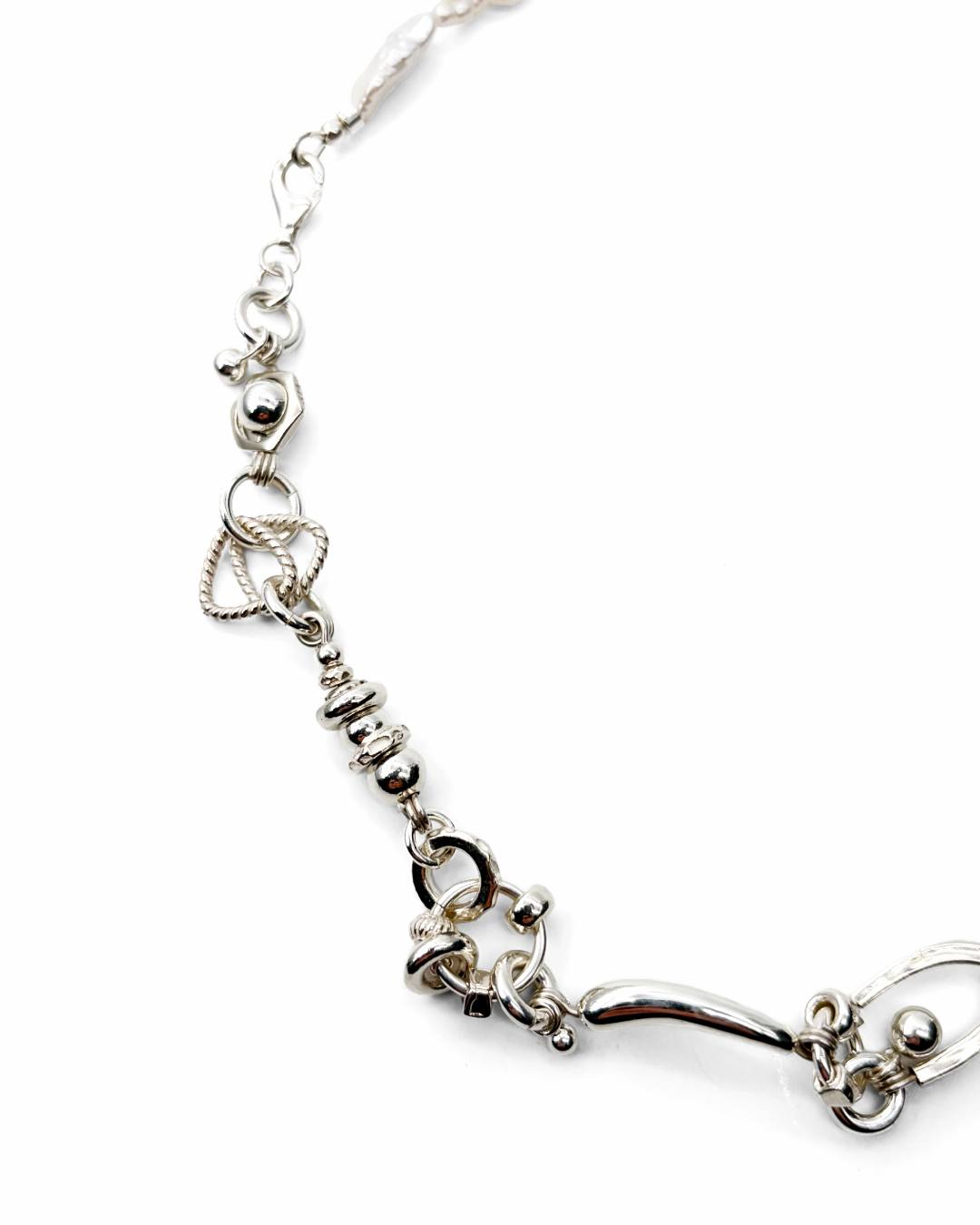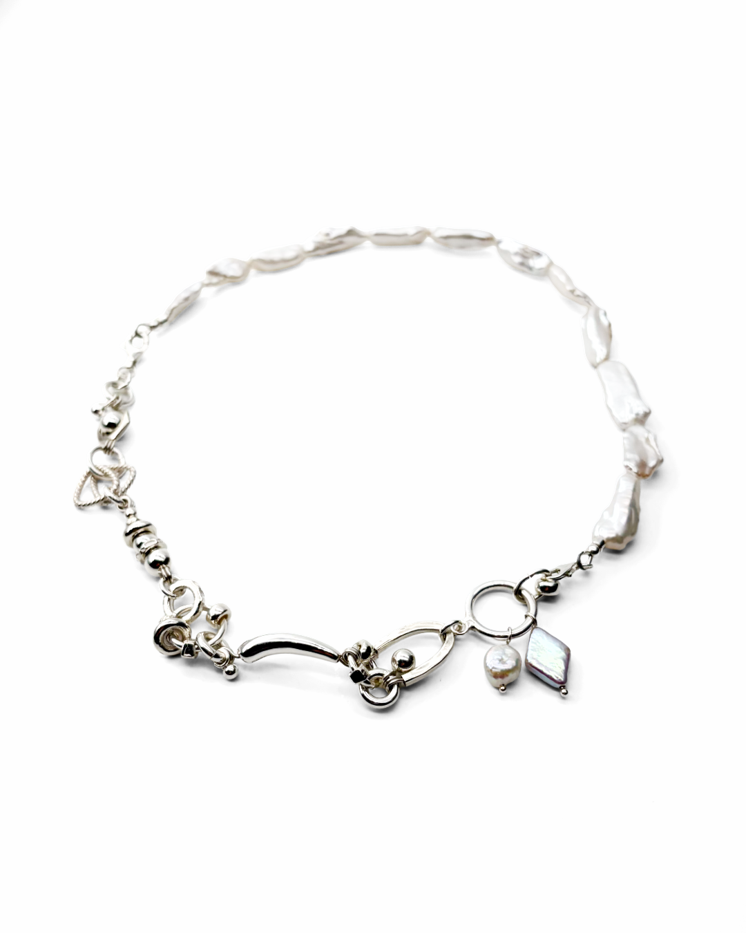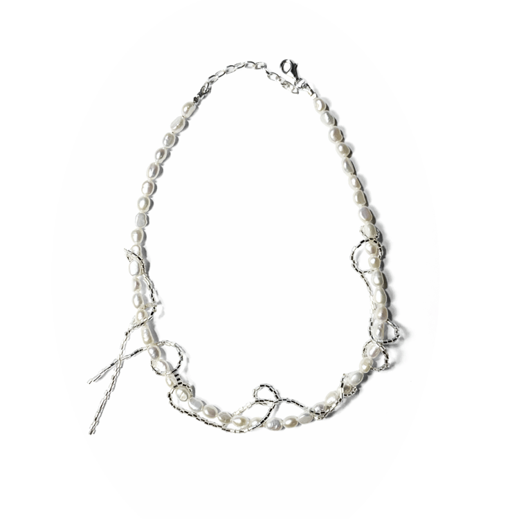 The lower silver chain is detachable and can be worn separately as a bracelet.