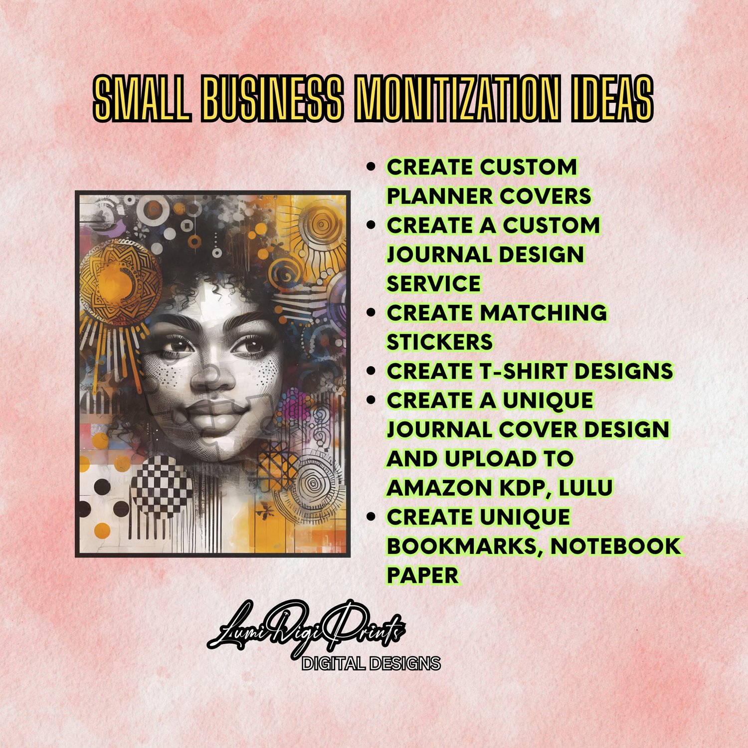 Add mood, motion, and modern artistry to your next creative project with Mixed Media Vibes. This journal cover set includes four 8.5x11" PNG designs featuring bold Black female portraits infused with grayscale contrast, rich textures, and layered abstract patterns.