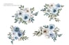 Enchanting Watercolor Dusty Blue & White Floral Clip Art Collection