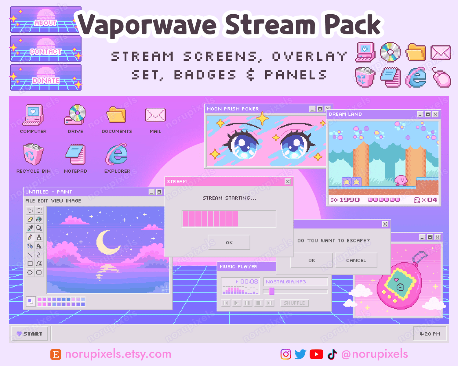 Y2k Windows Vaporwave Twitch Stream Pack