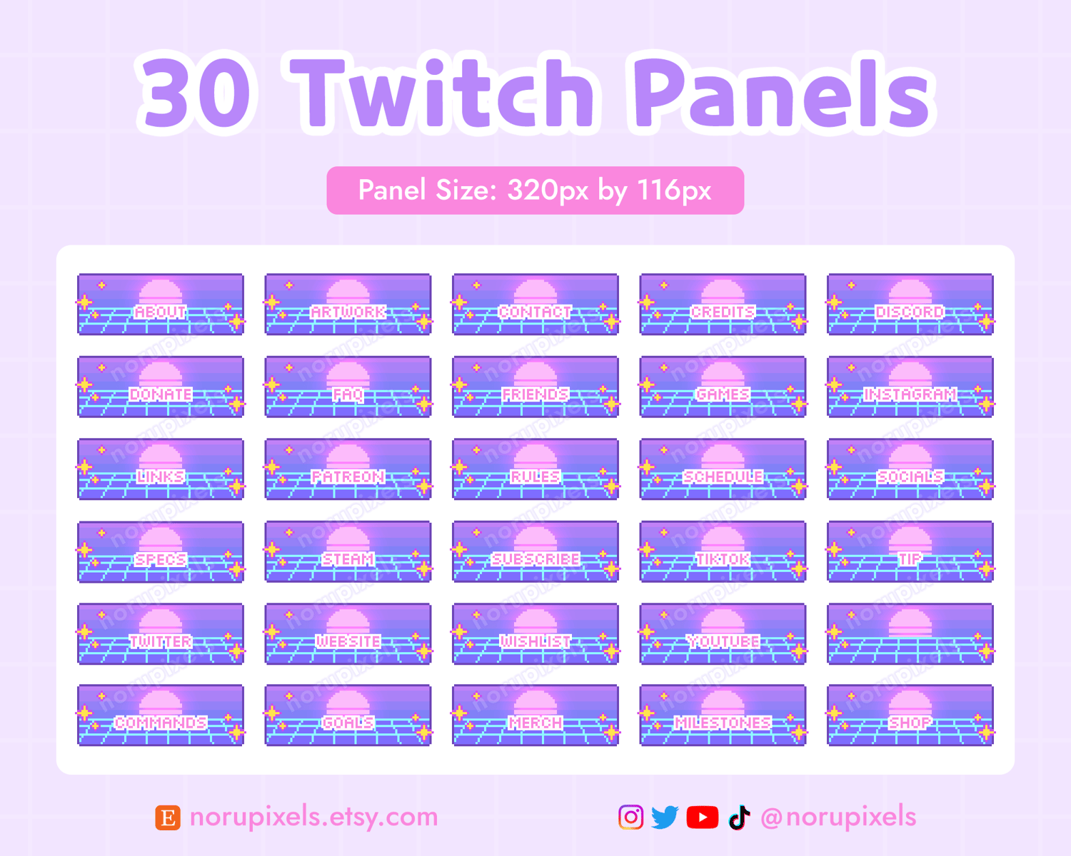 - 30 Twitch panels (each panel size: 320 x 116px)
