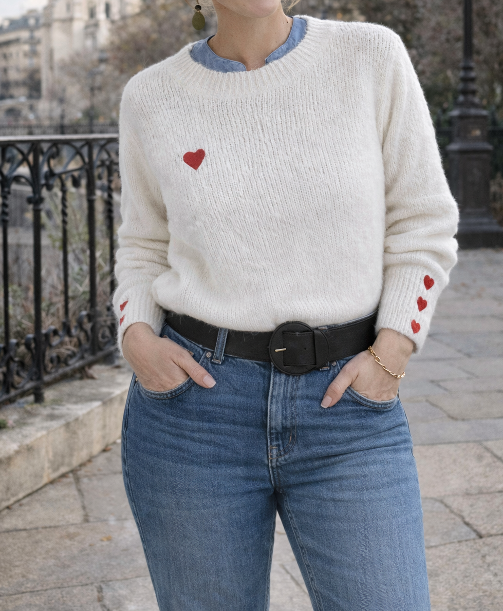 💕 Pull tout doux – Détails cœurs